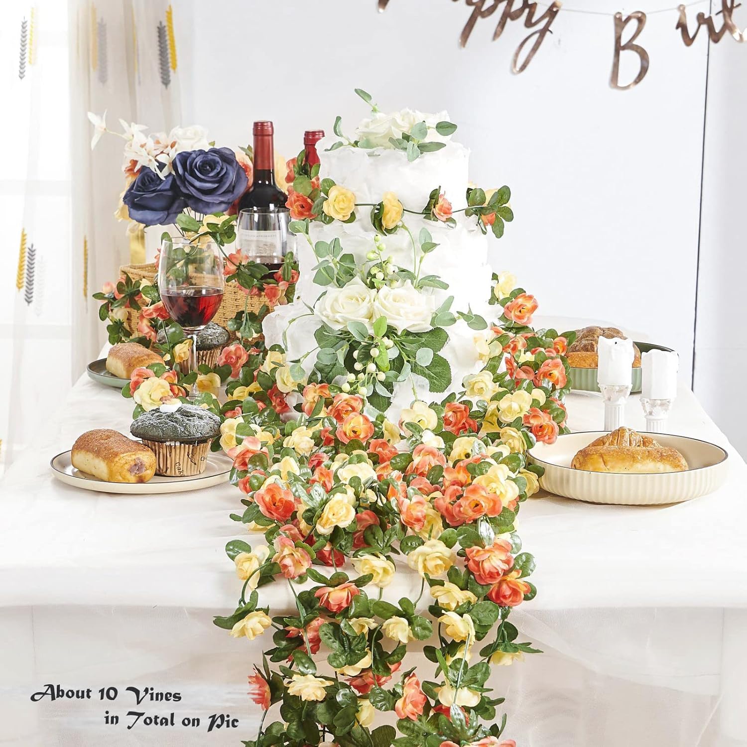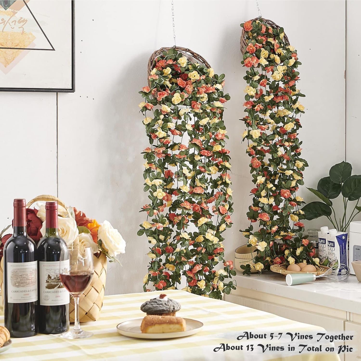 - Multi-use rose vine: With the vibrant color, PONKING fake rose vines are ideal for your wedding, party, vlentines, Christmas, birthday, DIY bouquets, arch home room decor, etc. They could also decorate your space with the string lights(not included). Adding more romantic atmosphere to you all