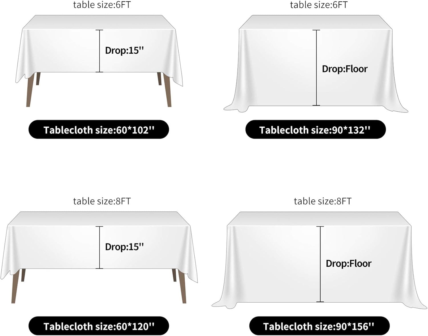 - 2 PACK SET, MORE ECONOMICAL: Each pack include 2 pcs of rectangular tablecloth, measuring 60”x120” each. Durable for repeat use, cheaper than renting.We also have 6 pack set and 12 pack set,which will save more.