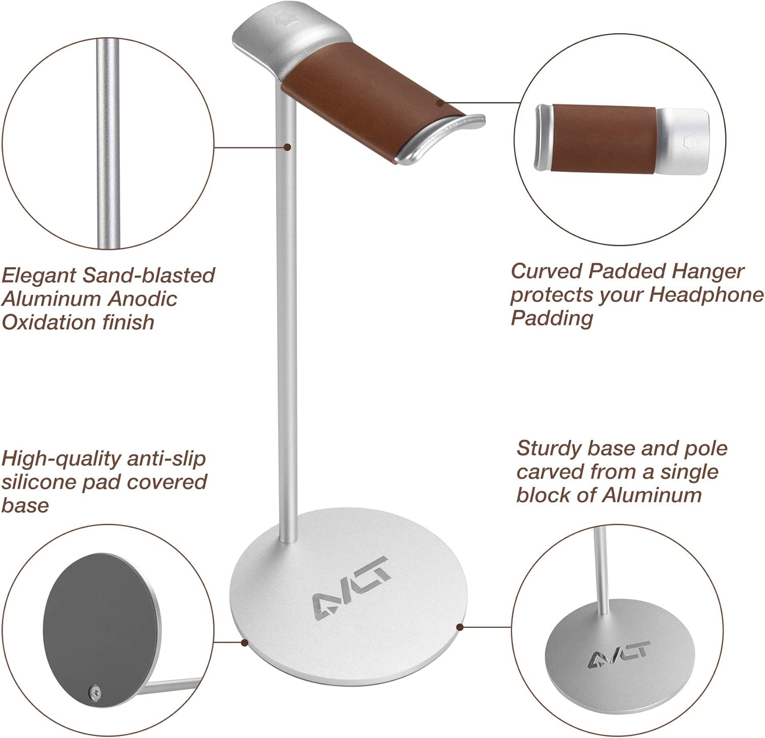 AVLT Universal Slim Aluminum Alloy Desktop Headphone Stand Anti-Slip Headset Display Organizer Hanger Rack Holder - Brown