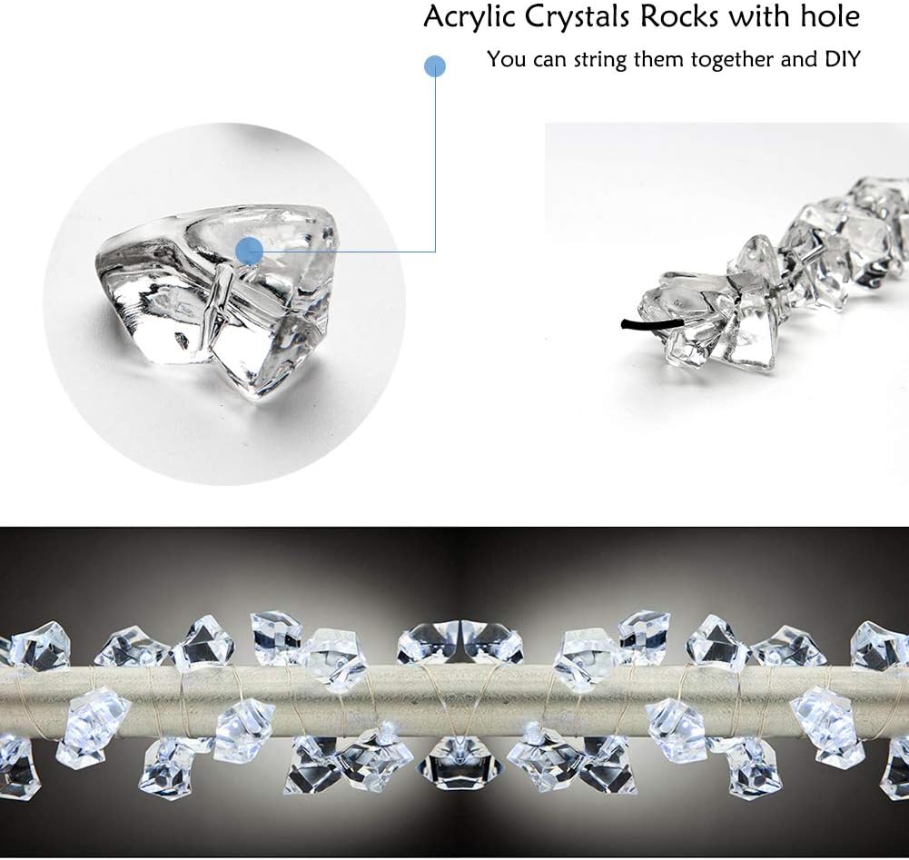 - 【Acrylic stones with hole】These holes are not easy to see ,You can use your creativity to connect them with anything, such as making ice crystal curtains, ice crystal trees, and even when making DIY hair accessories,From modern to rustic decor, these treasure gems adds shining bling to your christmas ornaments, vases ect.
