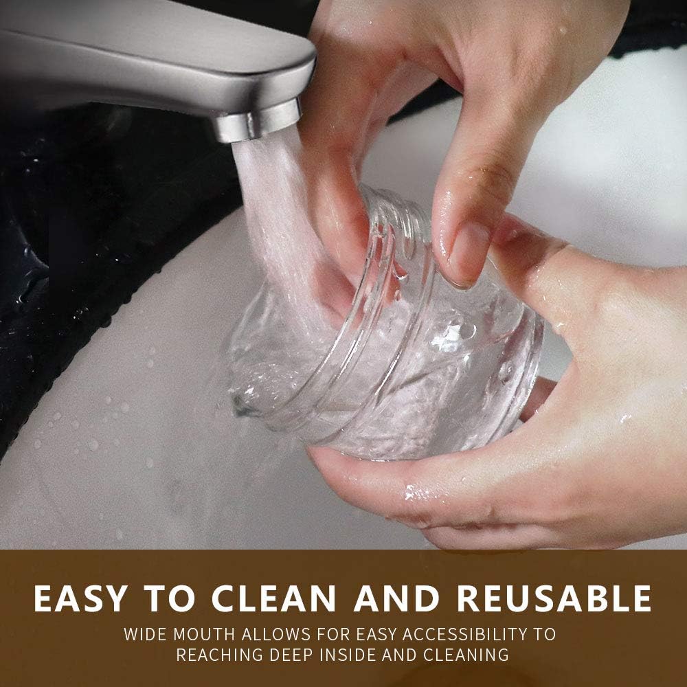 - Glass jars with metal Lids,reusable and durable for daily use. Wide mouth easy to access in and out, easy operate, designed for your convenience and suitable for everyday use