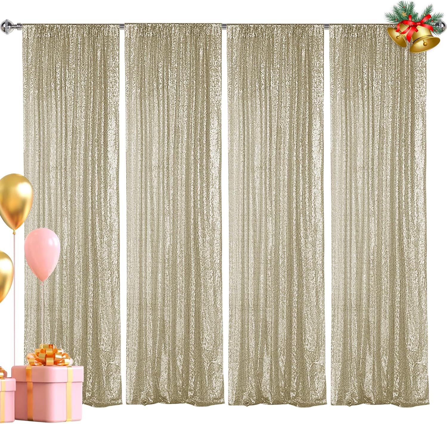 Hahuho Champagne Sequin Backdrop Curtain, 4PCS 2FTx8FT Glitter Backdrop Curtain for Parties, Christmas, Wedding, Party Decoration(4 Panels, 2FT x 8FT, Champagne