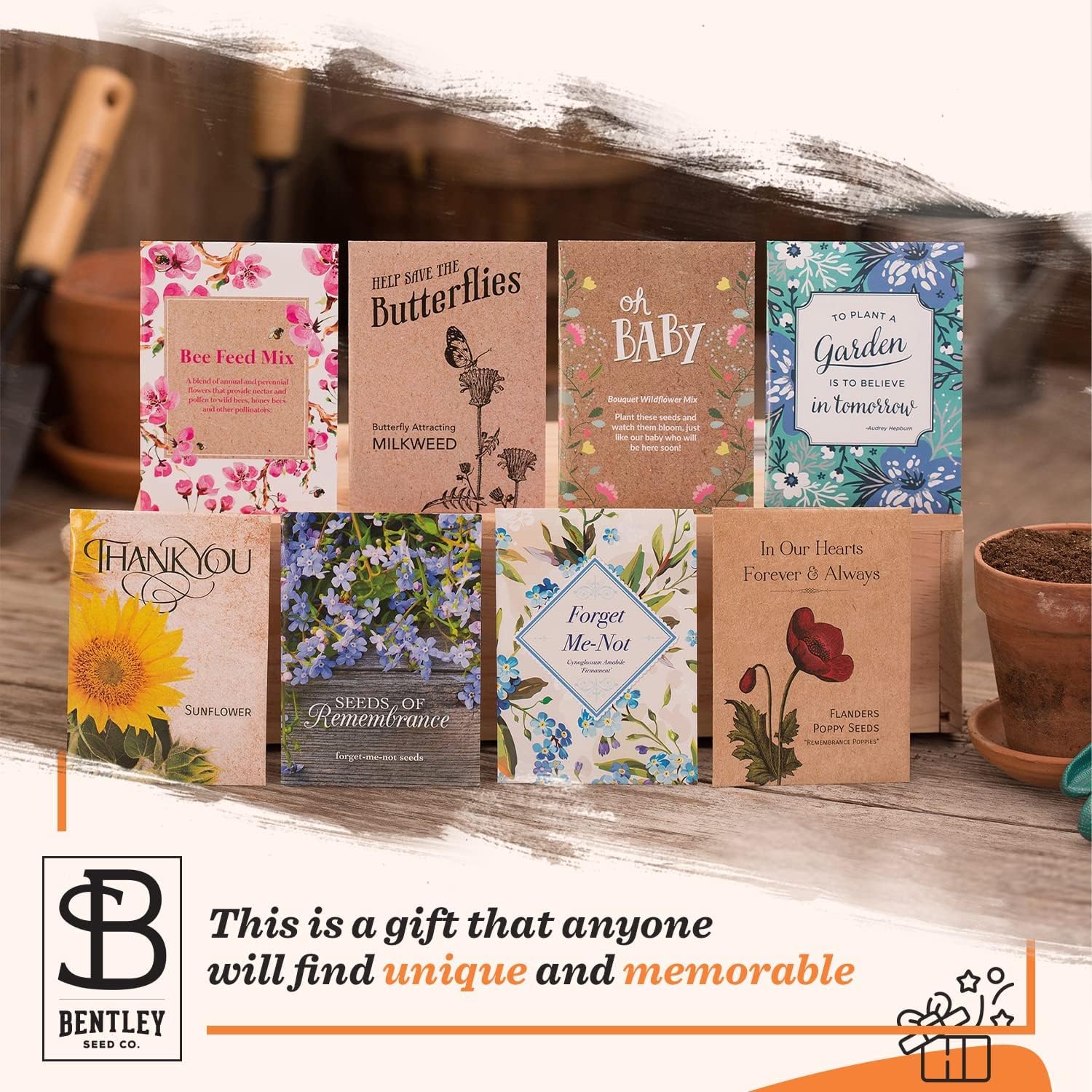 - GROW GOOD THINGS: At Bentley Seeds, we pride ourselves on providing consistent and high-quality flower seeds. Bentley Seed Co. offers multiple packet sizes, paper choices, and many seed varieties to accommodate any event.