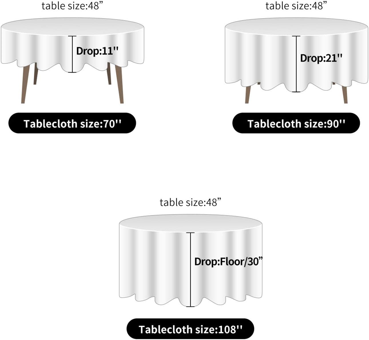 - 12 PACK SET, MORE ECONOMICAL: Each pack include 12 pcs of tablecloth, measuring 70β diameter each. Durable for repeat use, cheaper than renting.