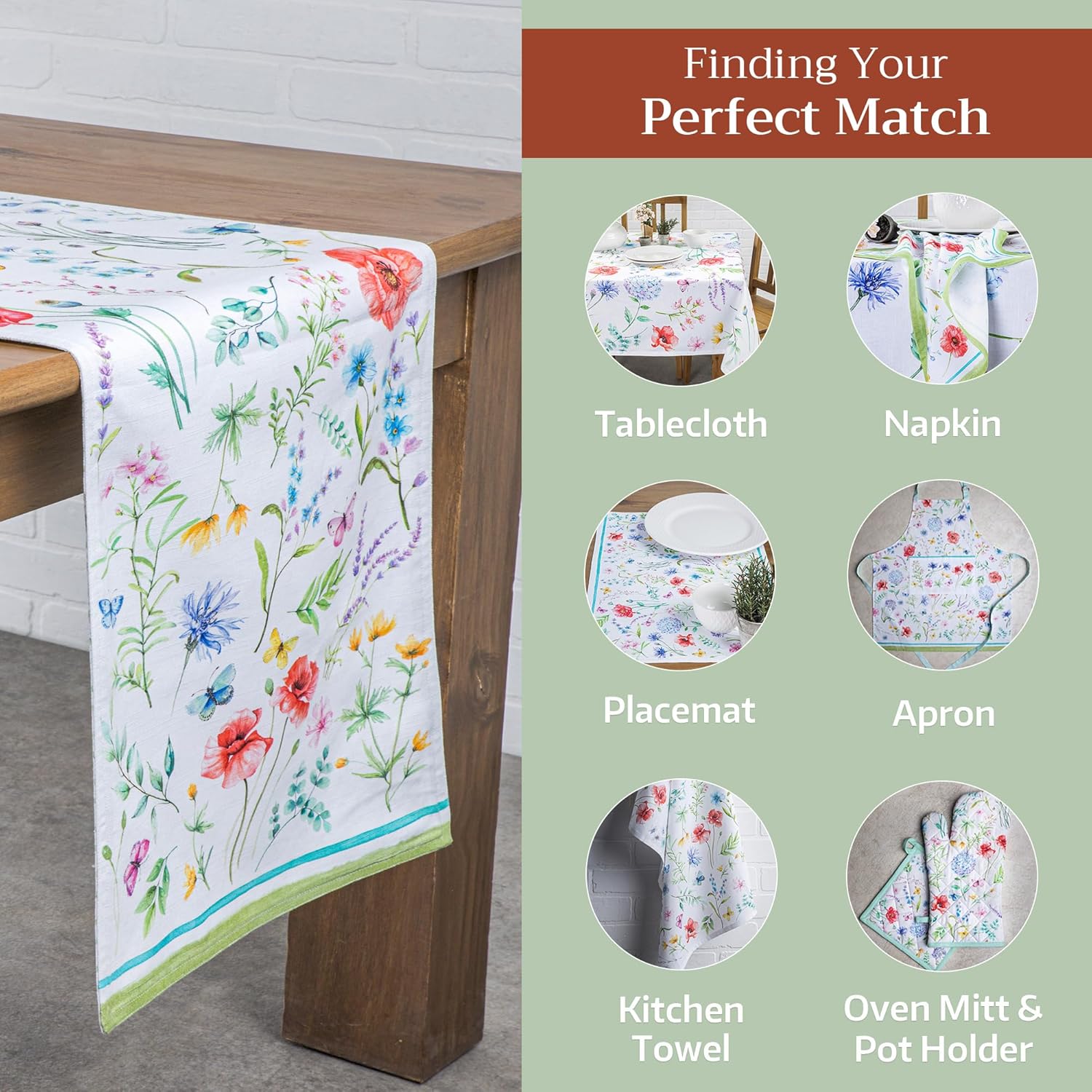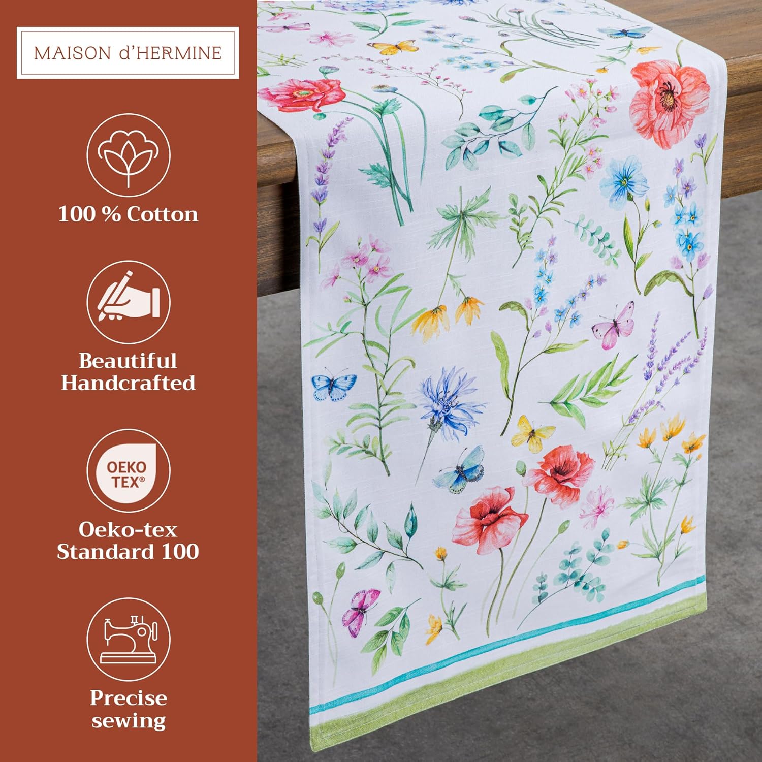 Maison d' Hermine Table Runner 100% Cotton Double Layer Table Runners 72 inches Long Decorative for Kitchen Dining Party Baby Shower Wedding Bridal Shower Spring Summer (Just Floral, 14.50" x 72")