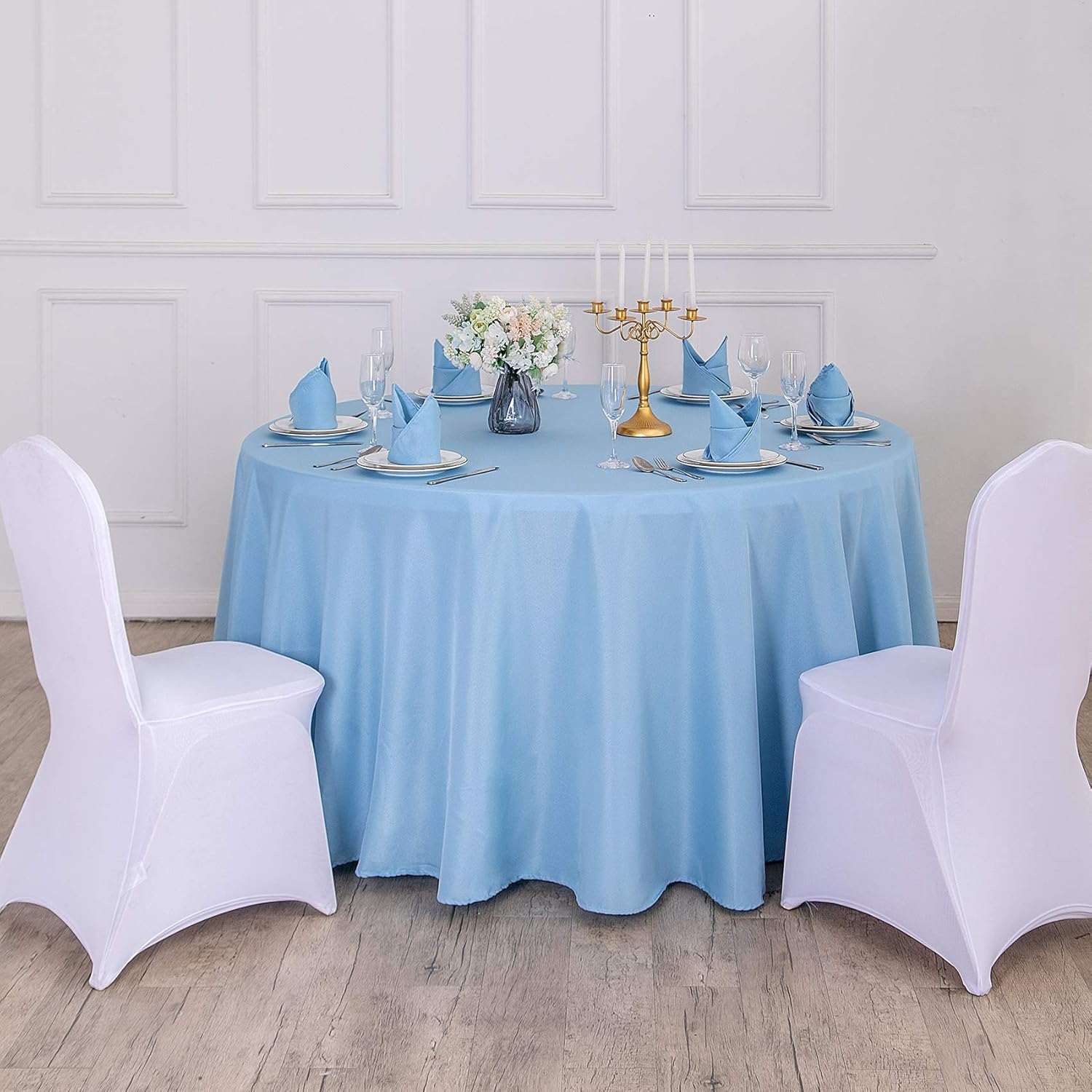 108 inch Round Tablecloth Washable Polyester Table Cloth Decorative Table Cover for Wedding Party Dining Banquet(108 inch,Blue Mist)