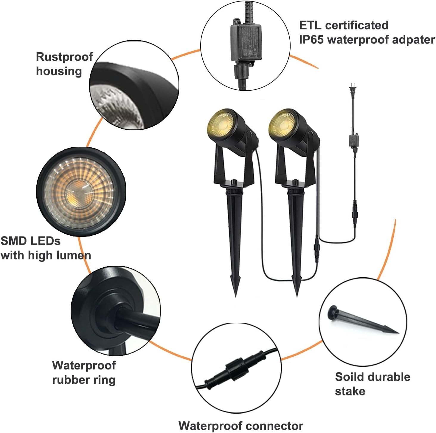 - 【Integrated LED Technology, No Need to Change Light Bulb】High-quality LED chips provide warm white glow. The upgraded lens makes the light well-balanced and glare-free without impact on eyes. LED landscape lights last longer than traditional lighting and use less energy