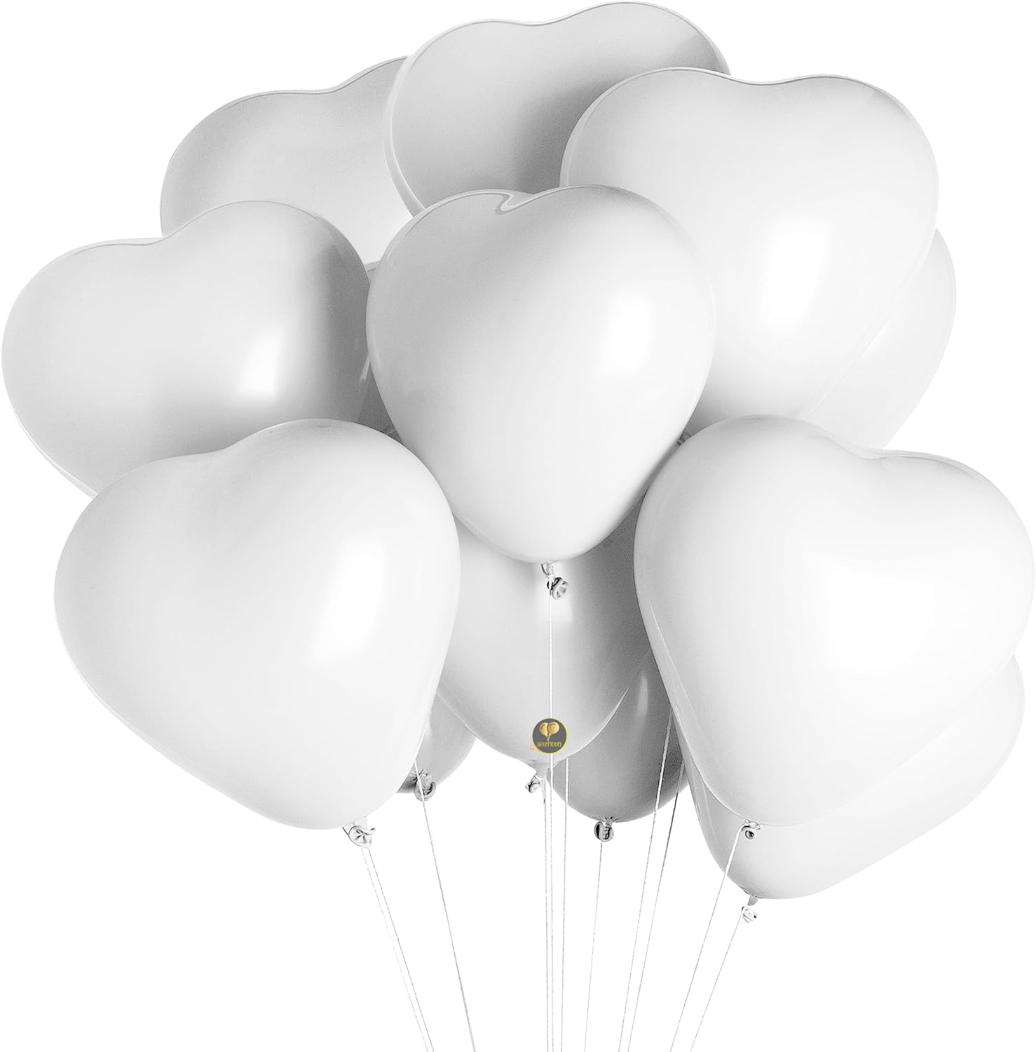 AFTERLOON® Biodegradable Balloons 24 pcs White 12 Inch Heart Shaped, Thickened Extra Strong Natural Latex Helium Float, Proposal Marriage Love Baby Shower Gender Reveal Wedding Bridal Corazones