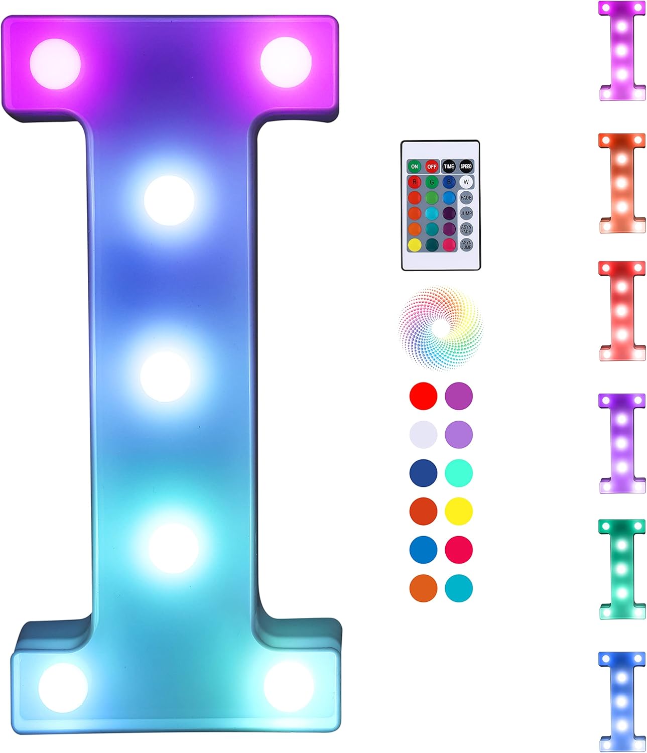 Foaky Colorful LED Letter Lights with Remote,Marquee Light Up Letters Sign for Night Light Wedding/Birthday Party Battery Powered Christmas Lamp Home Bar Decoration(I)