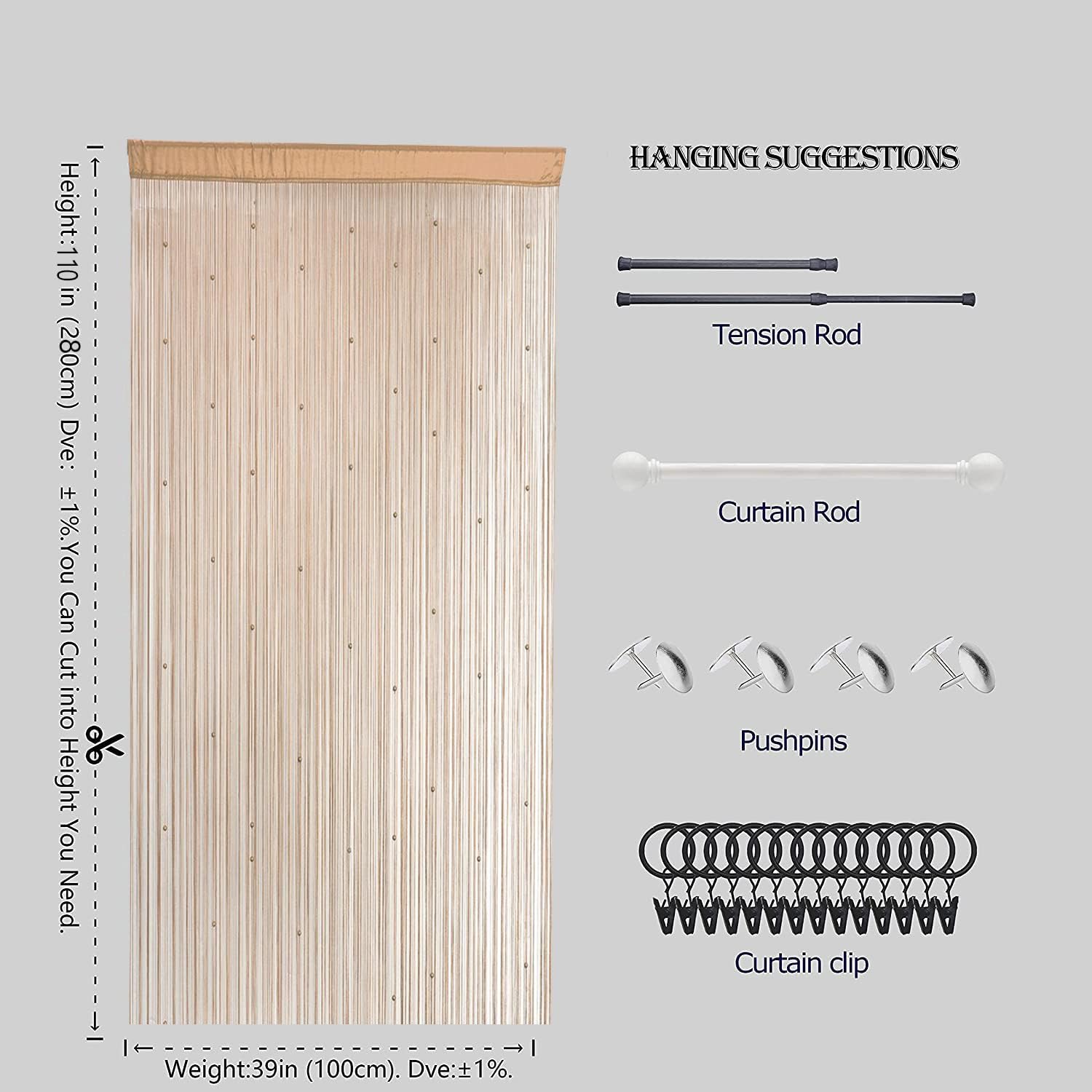 - The door curtains hang beautifully and let light in,meanwhile keep privacy,look pretty and delicate.If you need the strings to be dense,we suggest buy 2 or more.