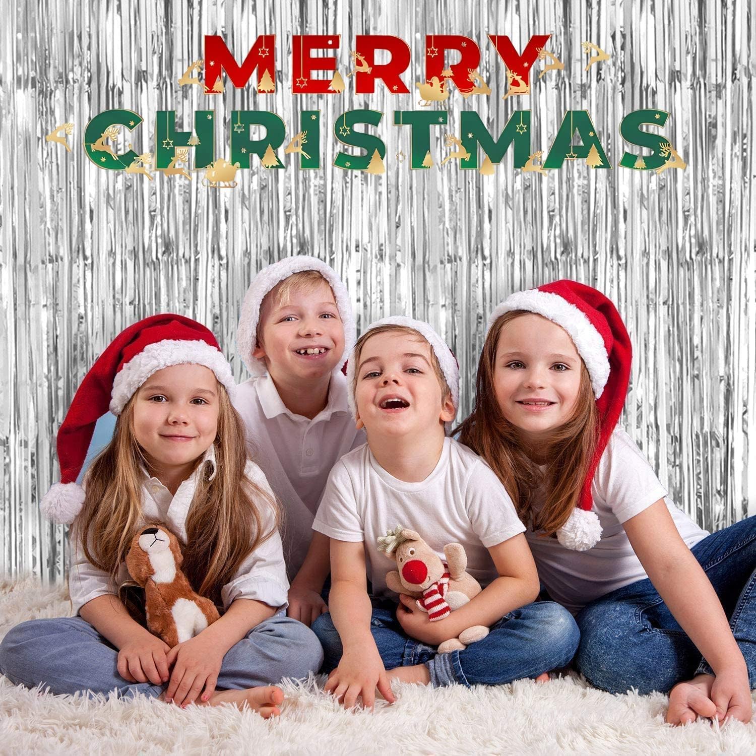- Total 6.4 ft x 8.2 ft Foil Fringe Backdrop.