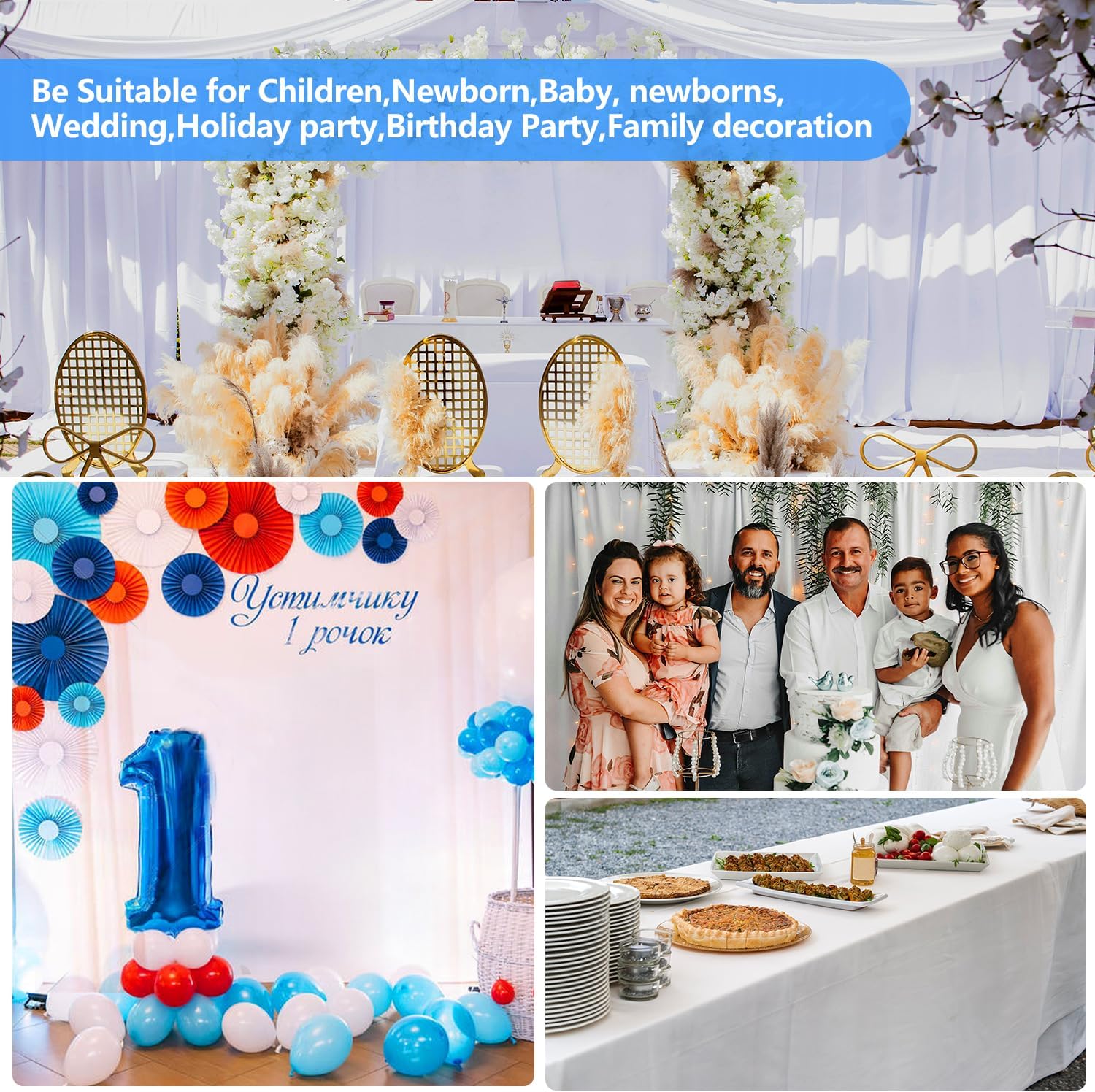 - Widely Used: White photoshoot backdrop is also perfect for weddings, receptions, parties, bridal and baby showers, birthdays, candy buffets, ceremony, arch stages photography, photo booths, video broadcast, interview and more