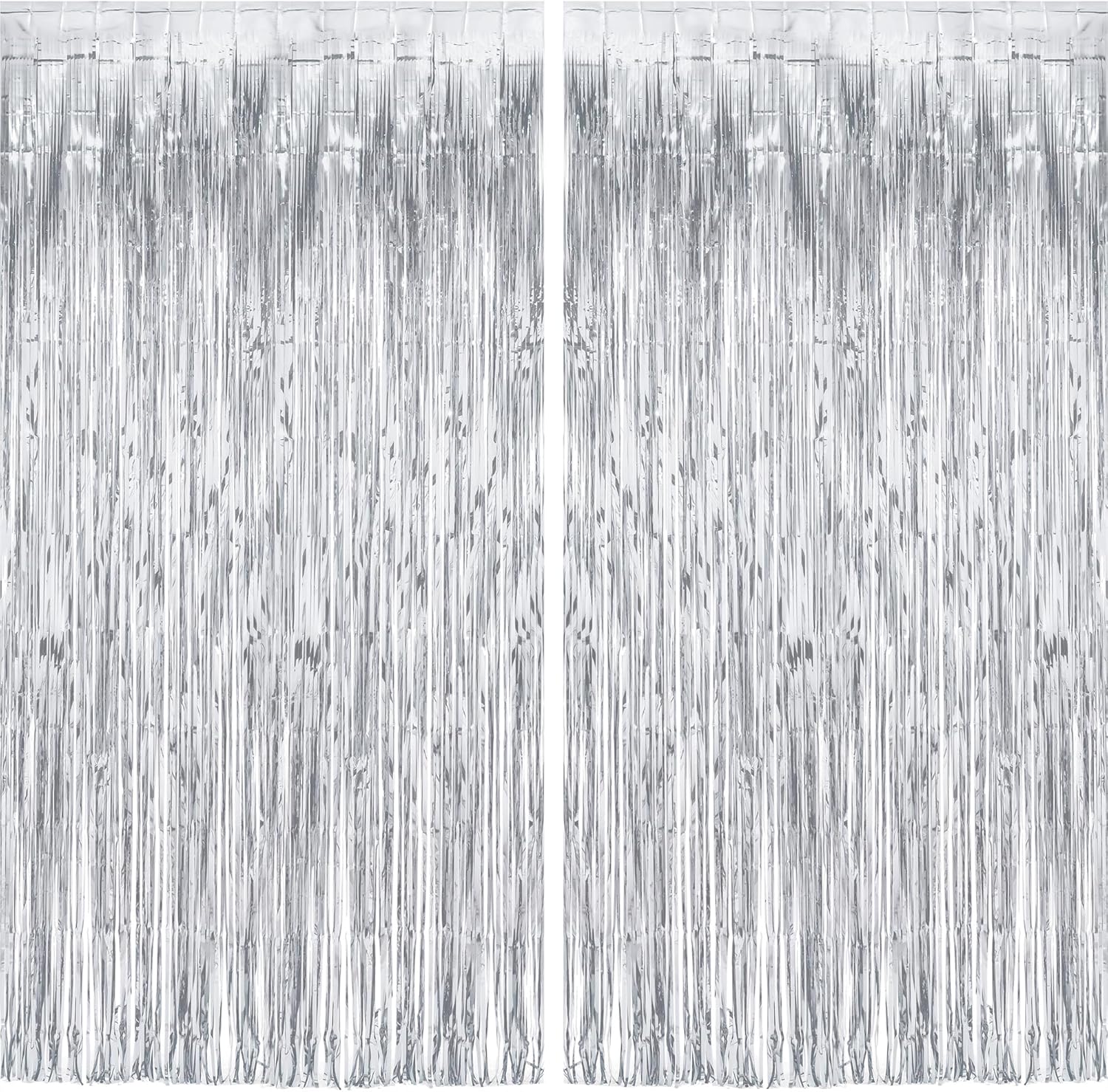 - Designed for convenience, this foil fringe curtain comes with tape for easy installation, saving you time and effort. Its shiny appearance adds a touch of wonder to any celebration, creating a magical atmosphere that delights guests of all ages. It can family gatherings and festive occasions, this silver backdrop is sure to make your event shine.