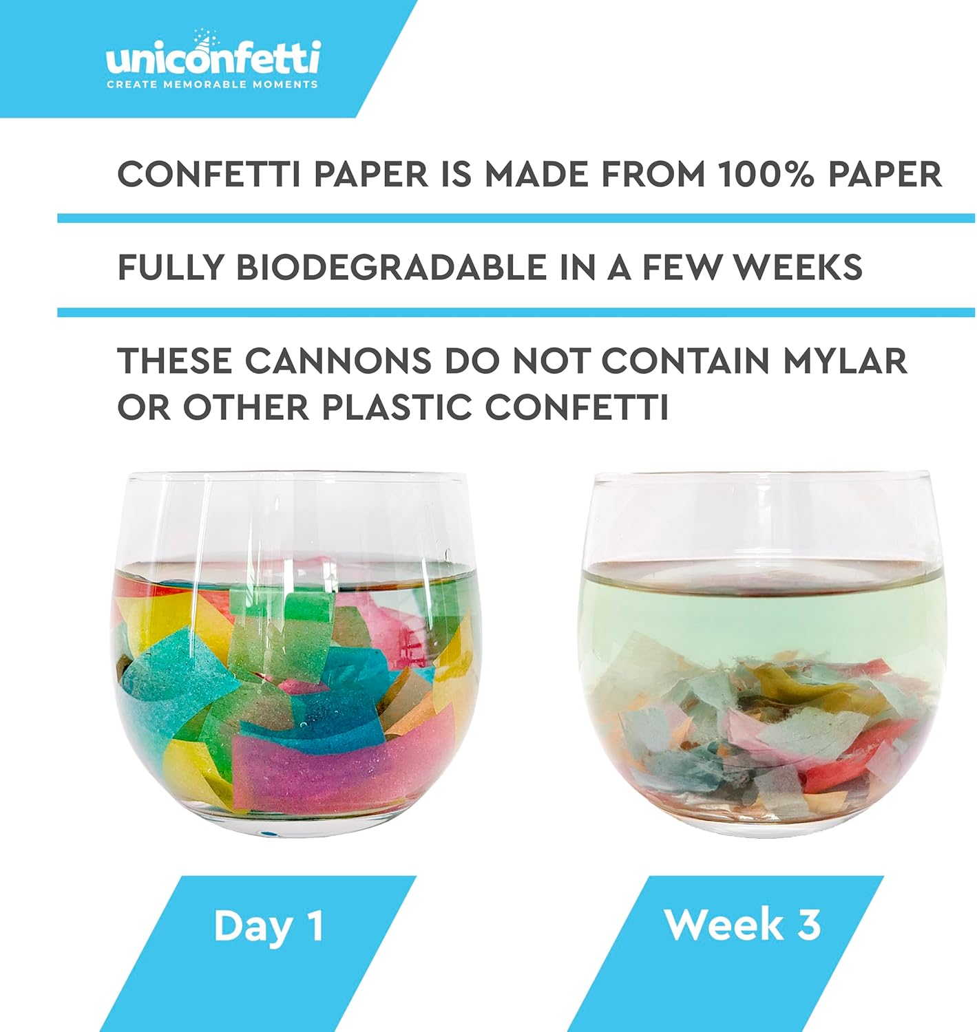 - Color : 6 Pack - Multicolor Biodegradable Confetti Cannons
