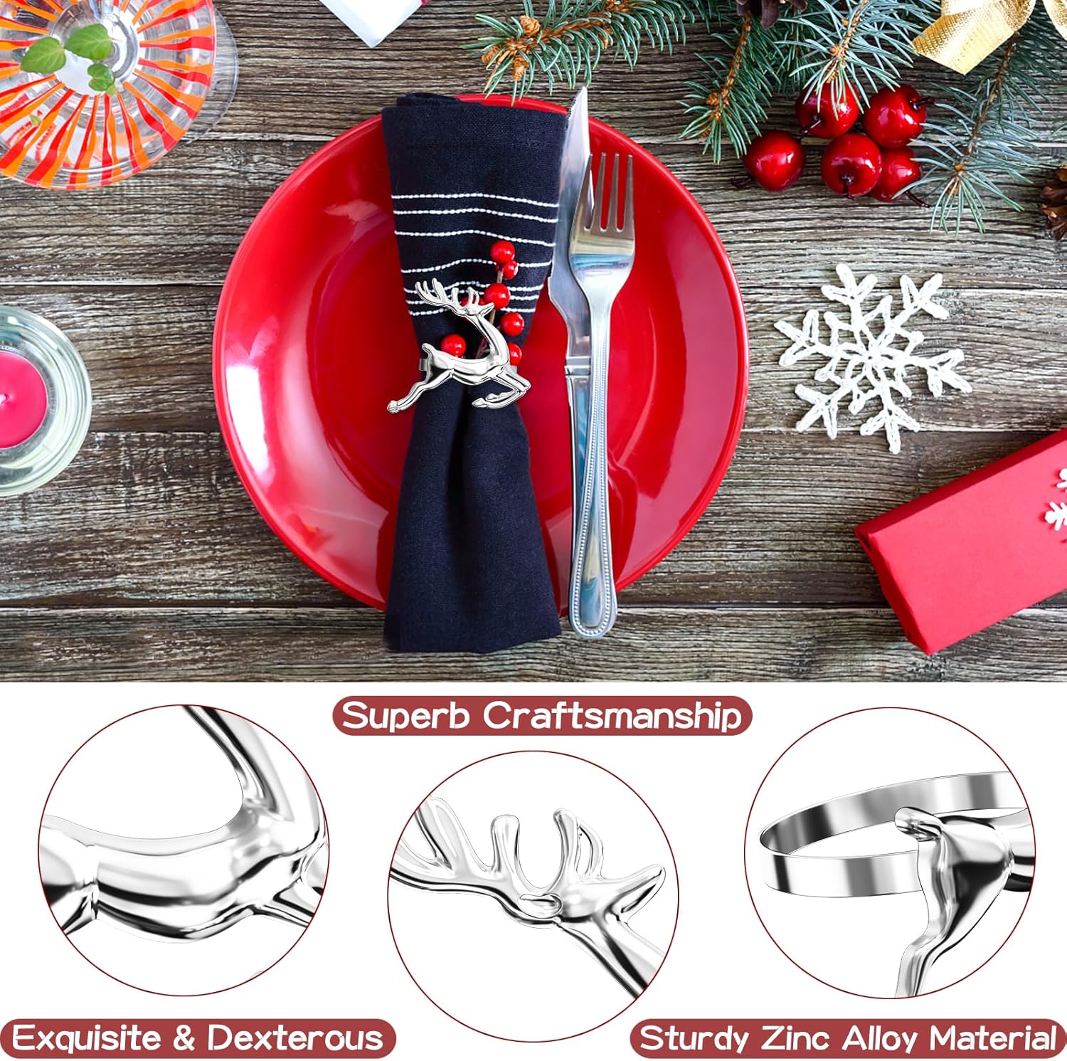 - Santa Bling Napkin Rings: You will receive silver deer napkins rings set of 12, simple and elegant, delicate and romantic, suitable for Christmas napkins cloth of different colors and materials. The reindeer Christmas decoration napkins rings could add more festive atmosphere to your Christmas table decorations for dinner party and become a highlight