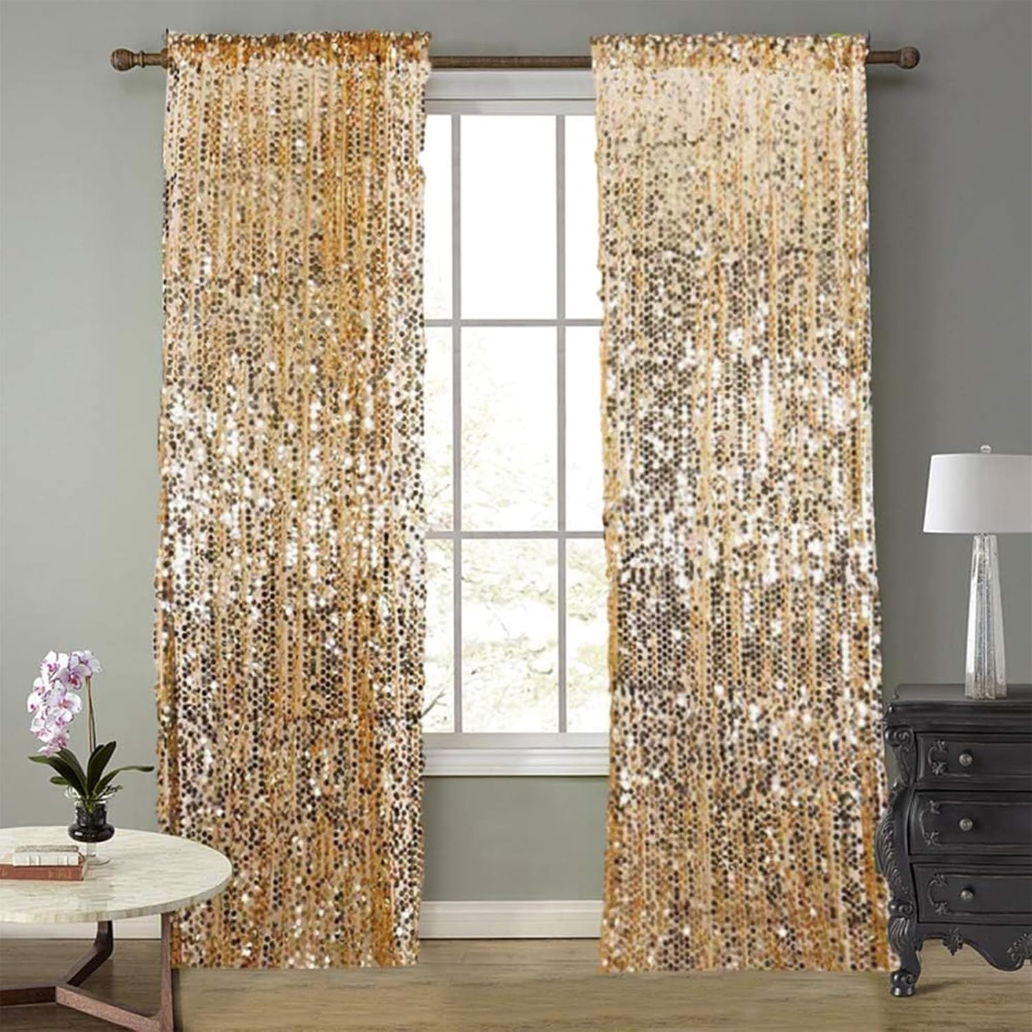 - Wide Use: Gold sequin backdrop curtains are perfect for birthdays, weddings, graduations, Christmas, Valentine's Day, portraits, photo booths, holiday decorations, home decorations and many other parties. If you have any questions, you can find us through Amazon and we will try our best to help you solve the questions!