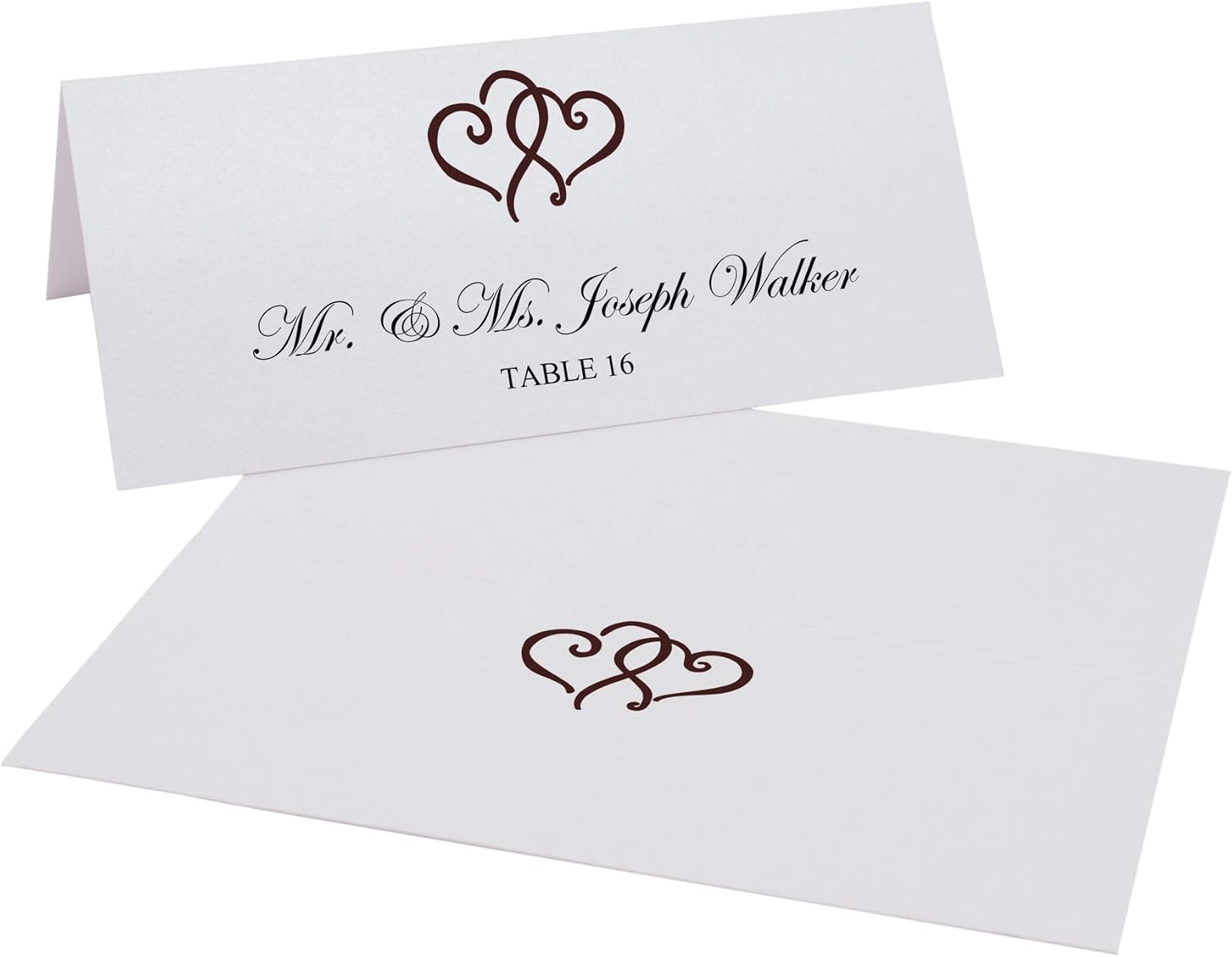 Linked Hearts Place Cards, Chocolate (Choose Color), Set of 25, Pre-cut and Scored - Wedding, Party, Dinner, and Special Events - Made in the USA