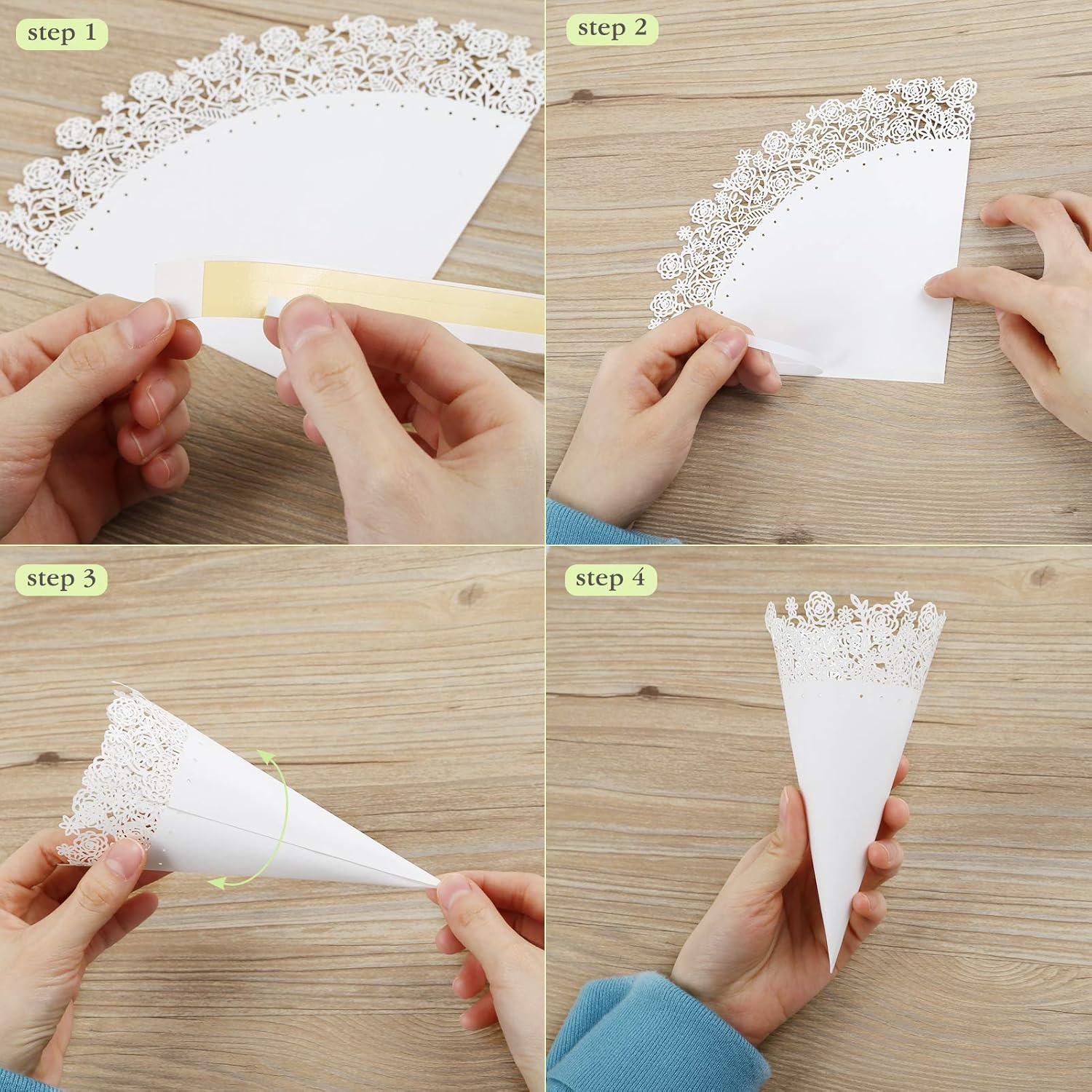 - Package includes: 100 fan-shaped paper confetti cones with strong double-sided tapes, enough for your wedding and buffet.