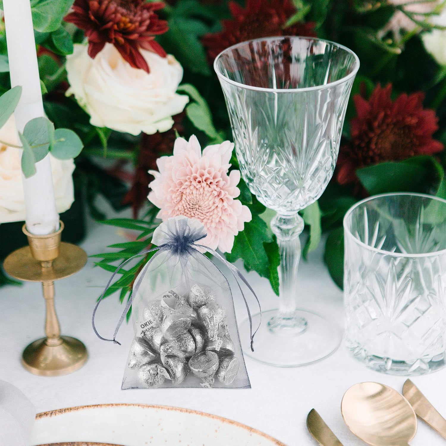 - An elegant addition to your event decorations. Silky soft organza pouches are perfect for adding a bit of color when giving your party guests any party favor treat.