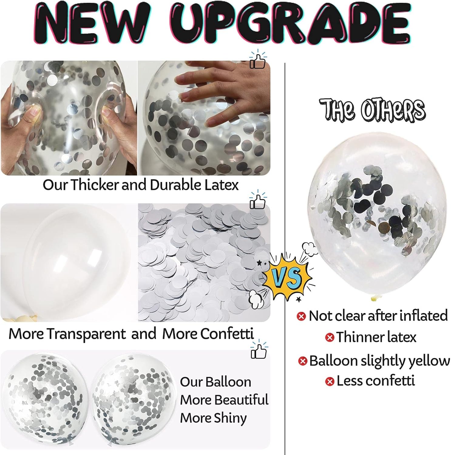 - Nice Party Accessory: Package of 25 clear balloons prefilled with silver confetti, each balloon has undergone rigorous testing to reduce the defect rate as much as possible