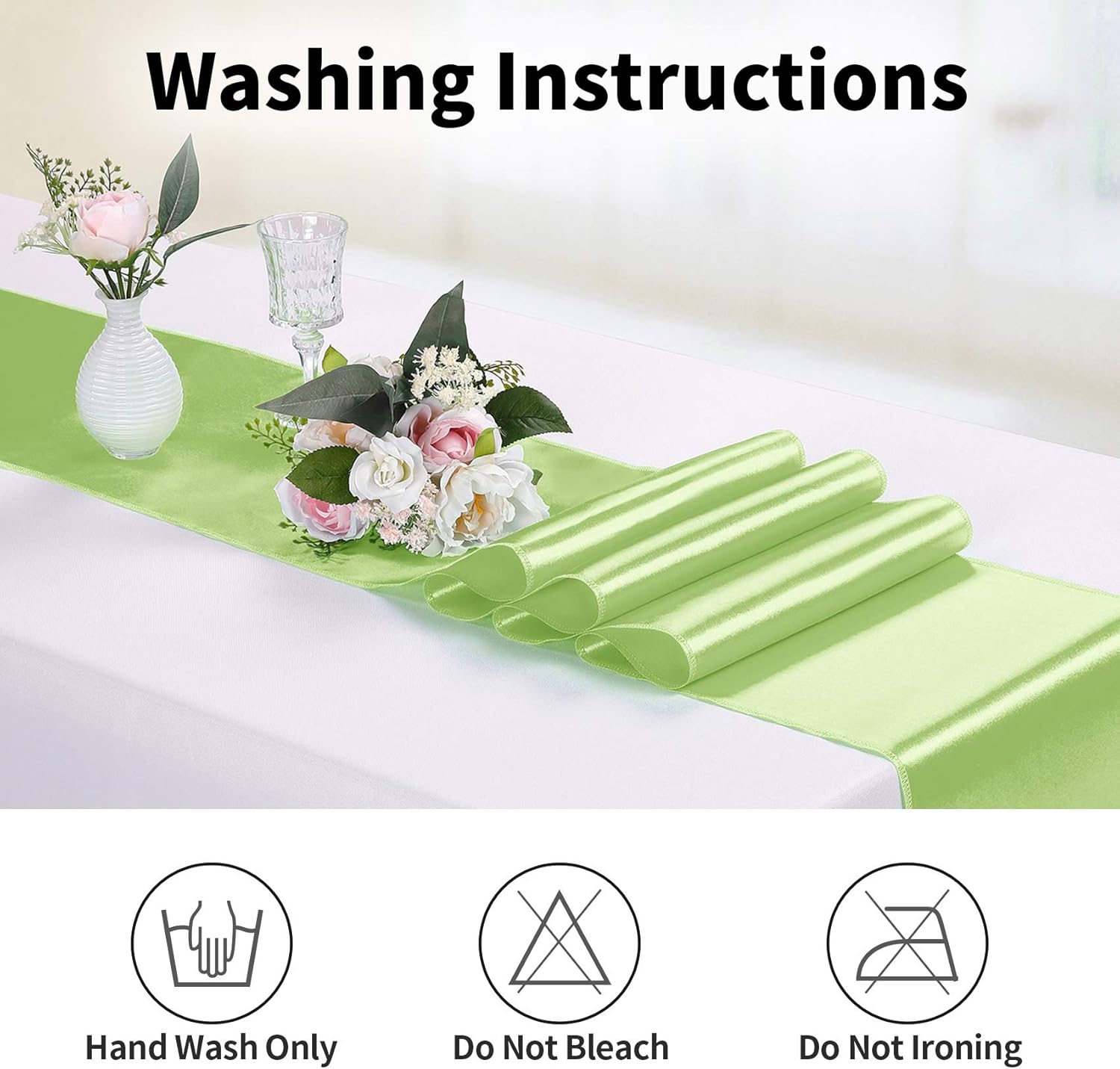 10-Pack Satin Table Runner Light Green 12 x 108 inches Long, Table Runners for Wedding, Birthday Parties, Banquets Decorations(10 Pack, 12x108 Inch, Light Green)