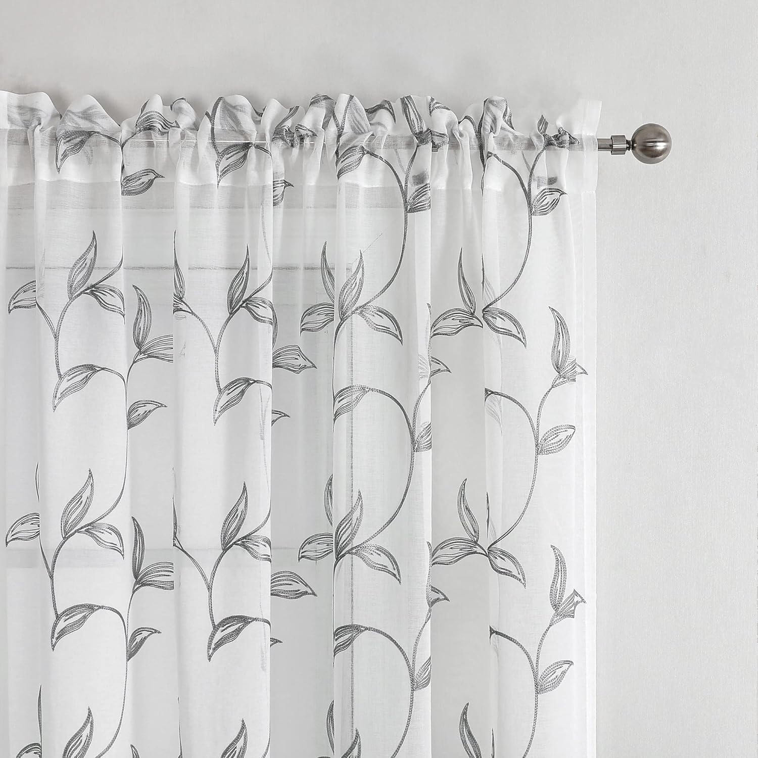 - Elegant embroidered design: window sheer curtains design grey vine leaves embroidered pattern, add style and elegance to living space, perfect for Bedroom, living room, kids room or any window.