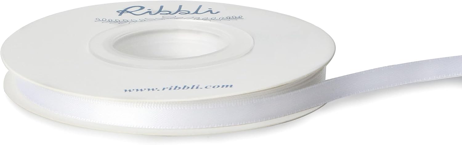 Ribbli Double Faced White Satin Ribbon,1/4” x Continuous 25 Yards,Use for Bows Bouquet,Gift Wrapping,Floral Arrangement