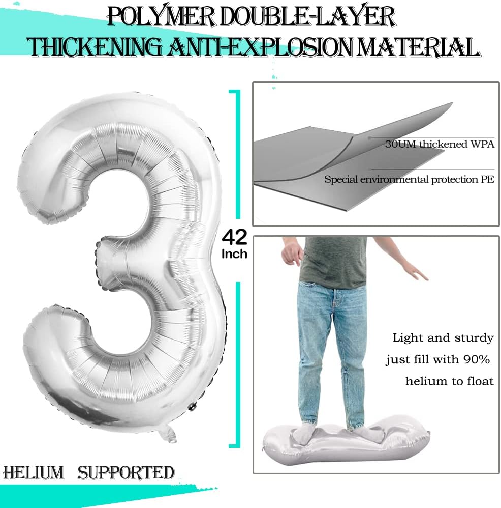 - Package Includes:42 inch Silver number 30 foil balloons,1 inflatable straw,10 meters ribbon