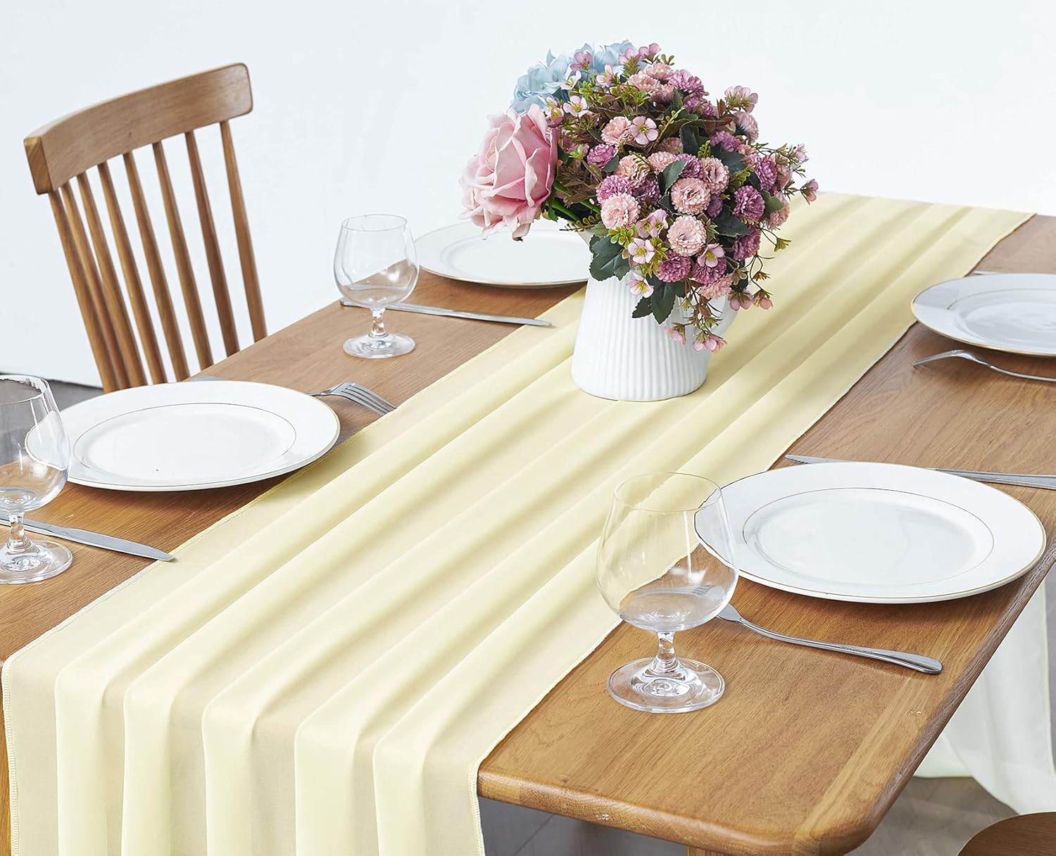 2 Pack 10Ft Light Yellow Chiffon Table Runner Sheer 29x120 Inch for Romantic Wedding Decor Bridal & Baby Shower Birthday Rustic Party Decoration