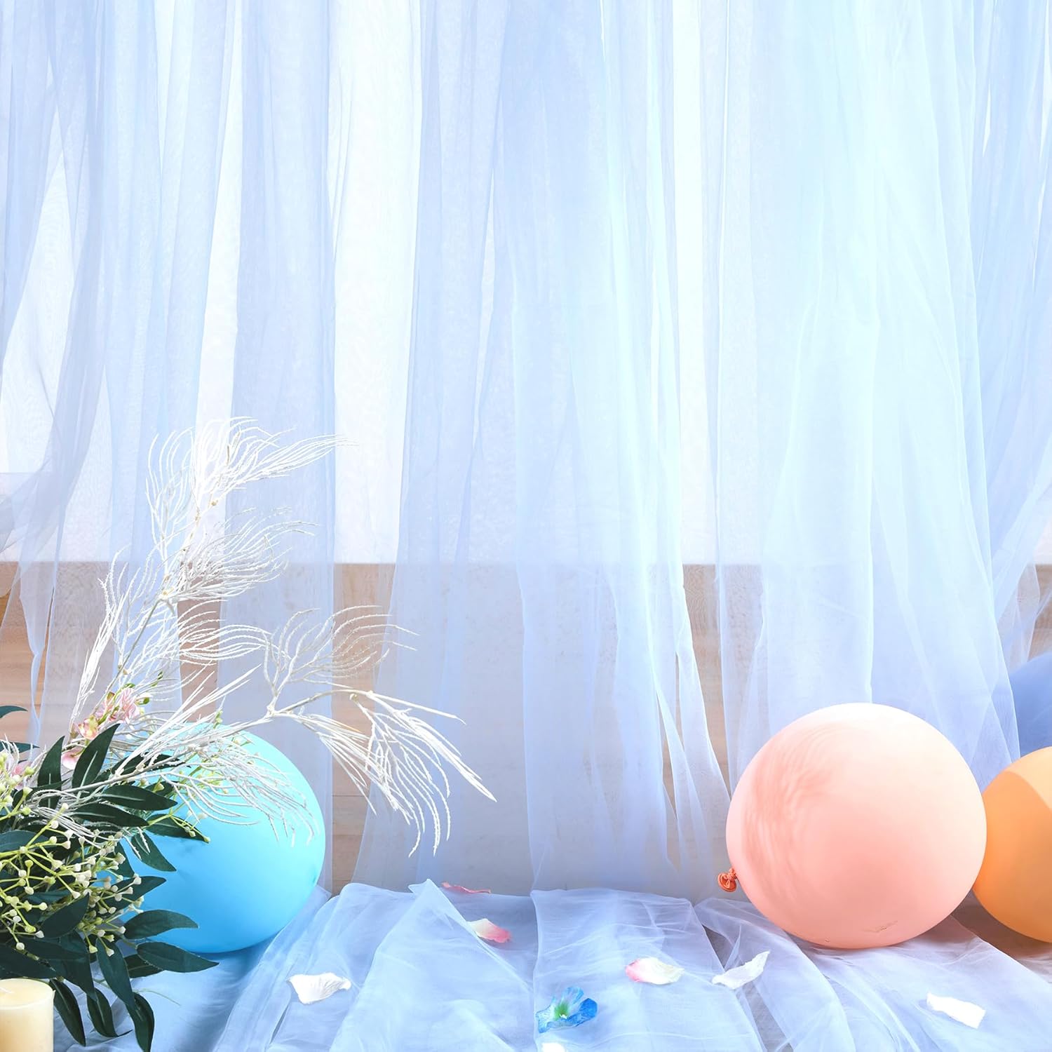 Baby Blue Sheer Backdrop Curtains for Baby Shower Boys Birthday Party Wedding 2 Panels 5 ft X 10 ft Baby Blue Tulle Backdrop Curtains for Party Photoshoot Background Decorations