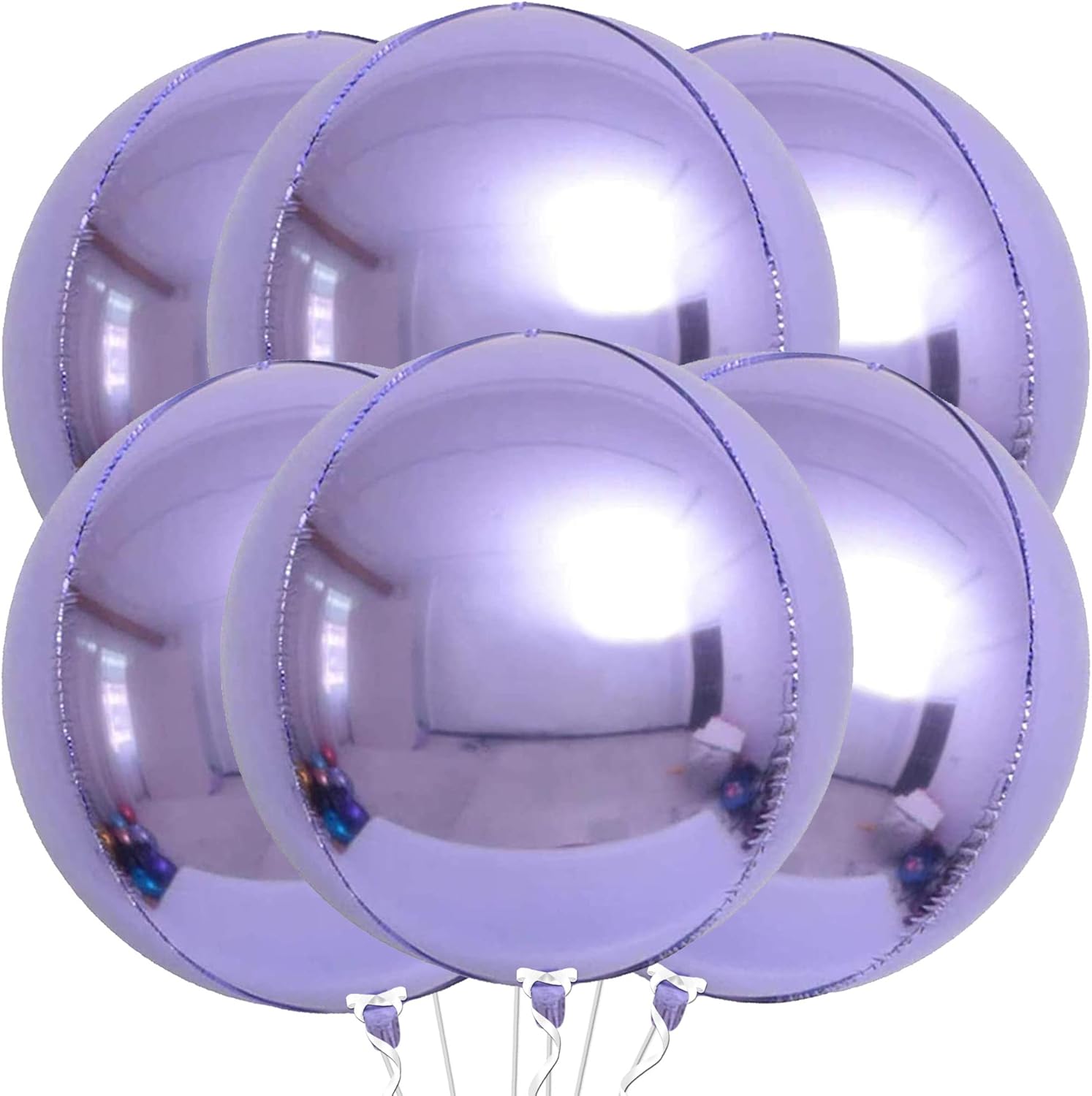KatchOn, Big Purple Mylar Balloons - 22 Inch, Pack of 6 | Round 4D Metallic Lavender Balloon for Purple Party Decorations | Metallic Balloons for Anniversary | Unicorn, Mermaid Birthday Decorations