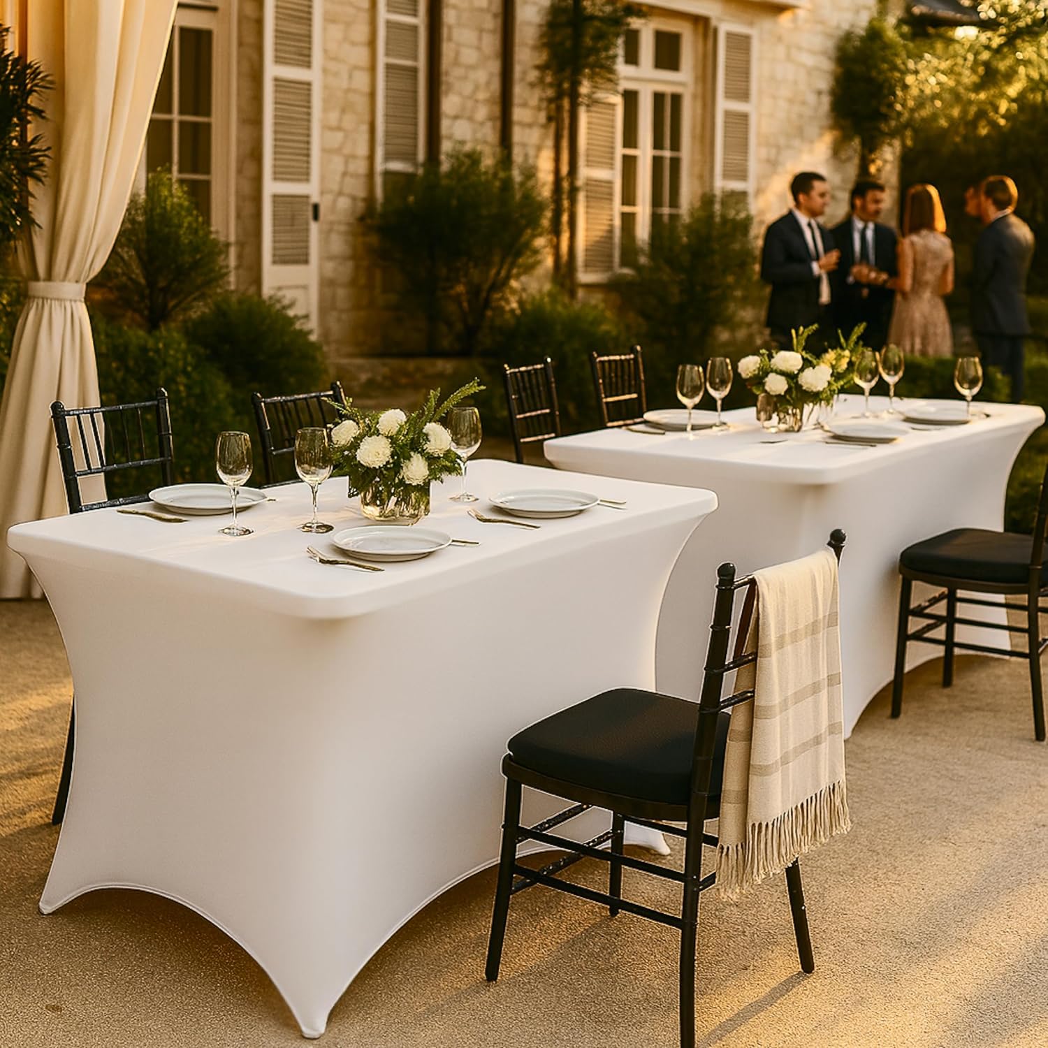 - Perfect Fit for 8-Foot Tables: Our pack of 2 stretch table cloths for 8 ft tables, made from a high-quality blend of 90% polyester and 10% spandex, provides a tailored fit for 8-foot tables, ensuring a sleek, polished look for any event