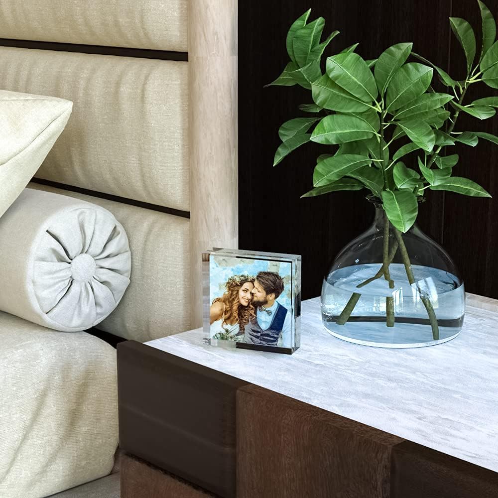HELPLEX Acrylic Frames, 2 Pack 4x4, 20mm Thicker Frameless Clear Frame, Double Sided Magnetic, Free Standing Desktop Display