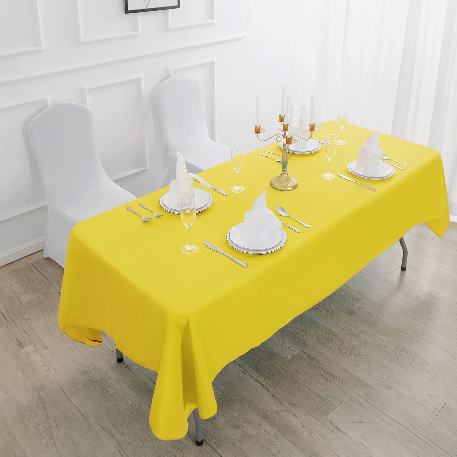 Rectangle Tablecloth 90x156 inch Washable Polyester Fabric Table Cloth for Wedding Party Dining Banquet Decoration(90x156, Yellow)
