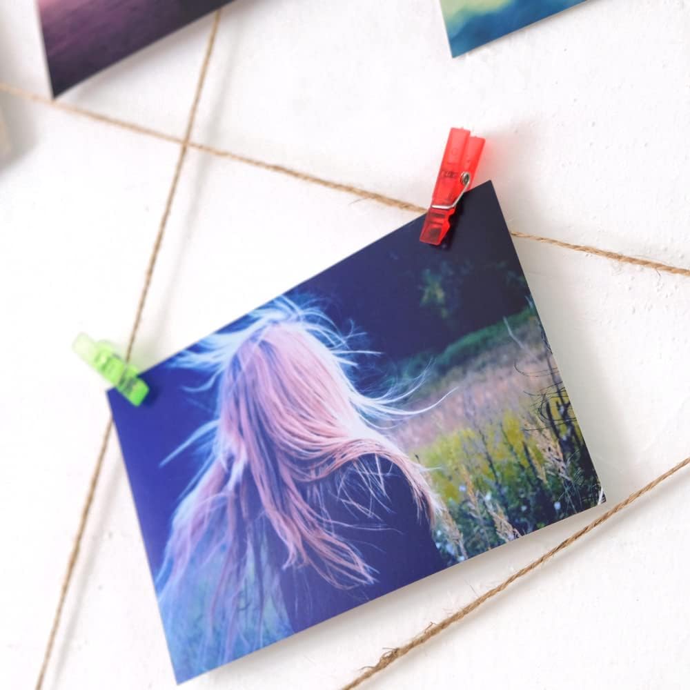 100pcs Mini Clear Hanging Photo Clips + 30m Twine for Picture Display, Arts & Crafts - Plastic Clothespins, Paper Peg Pin Craft Clips (Multi-Color)