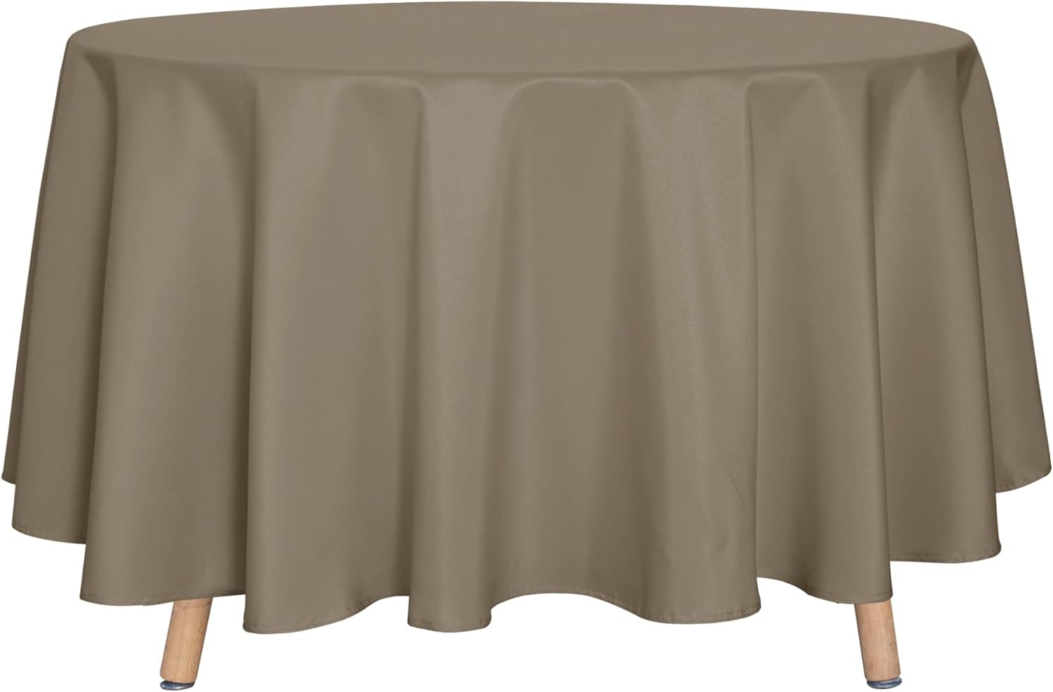 sancua Round Tablecloth - 90 Inch - Water Resistant Spill Proof Washable Polyester Table Cloth Decorative Fabric Table Cover for Dining Tables, Buffet Parties and Camping, Taupe