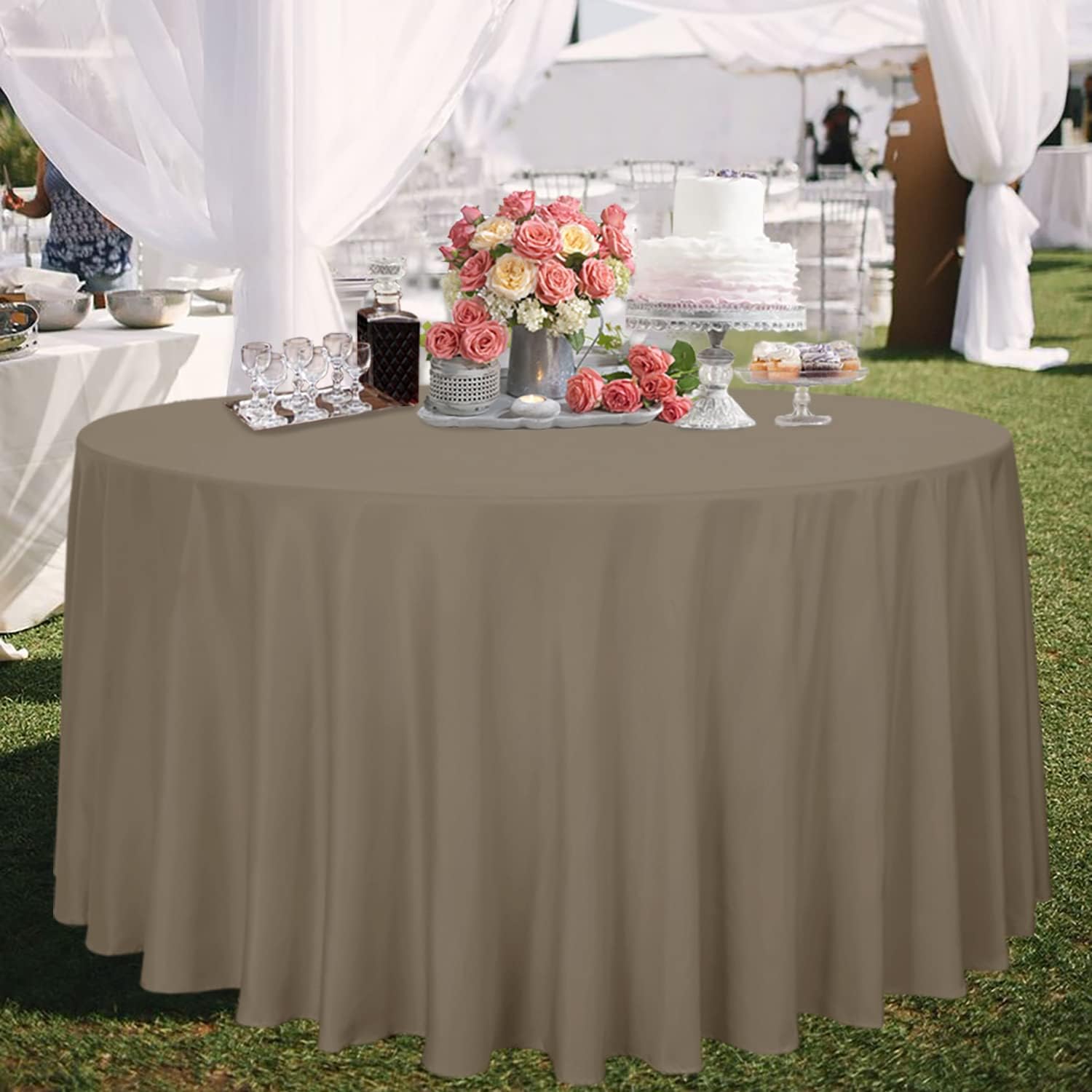 sancua Round Tablecloth - 120 Inch - Water Resistant Spill Proof Washable Polyester Table Cloth Decorative Fabric Table Cover for Dining Tables, Buffet Parties and Camping, Taupe