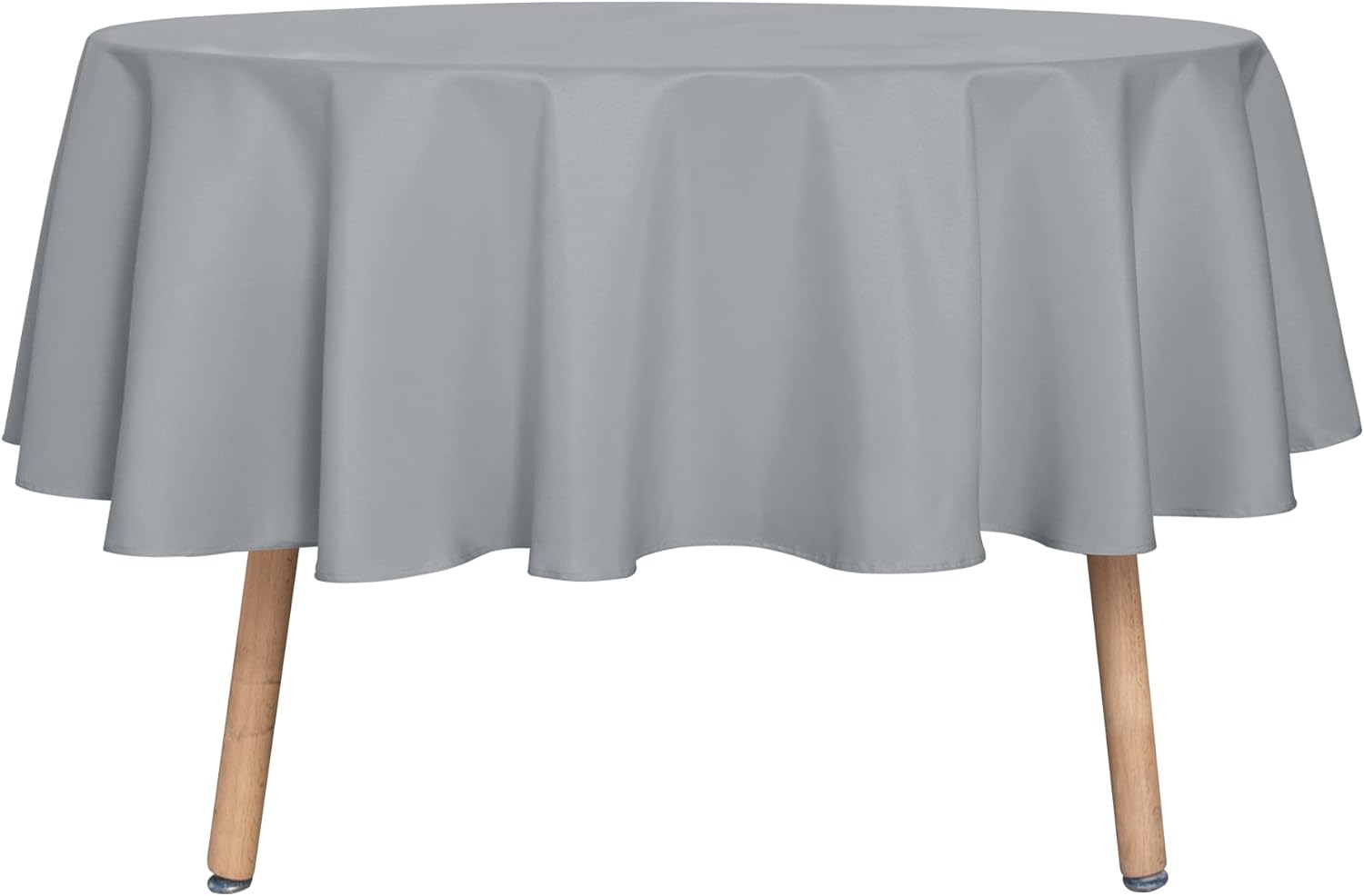 sancua Round Tablecloth - 70 Inch - Water Resistant Spill Proof Washable Polyester Table Cloth Decorative Fabric Table Cover for Dining Tables, Buffet Parties and Camping, Silver Grey