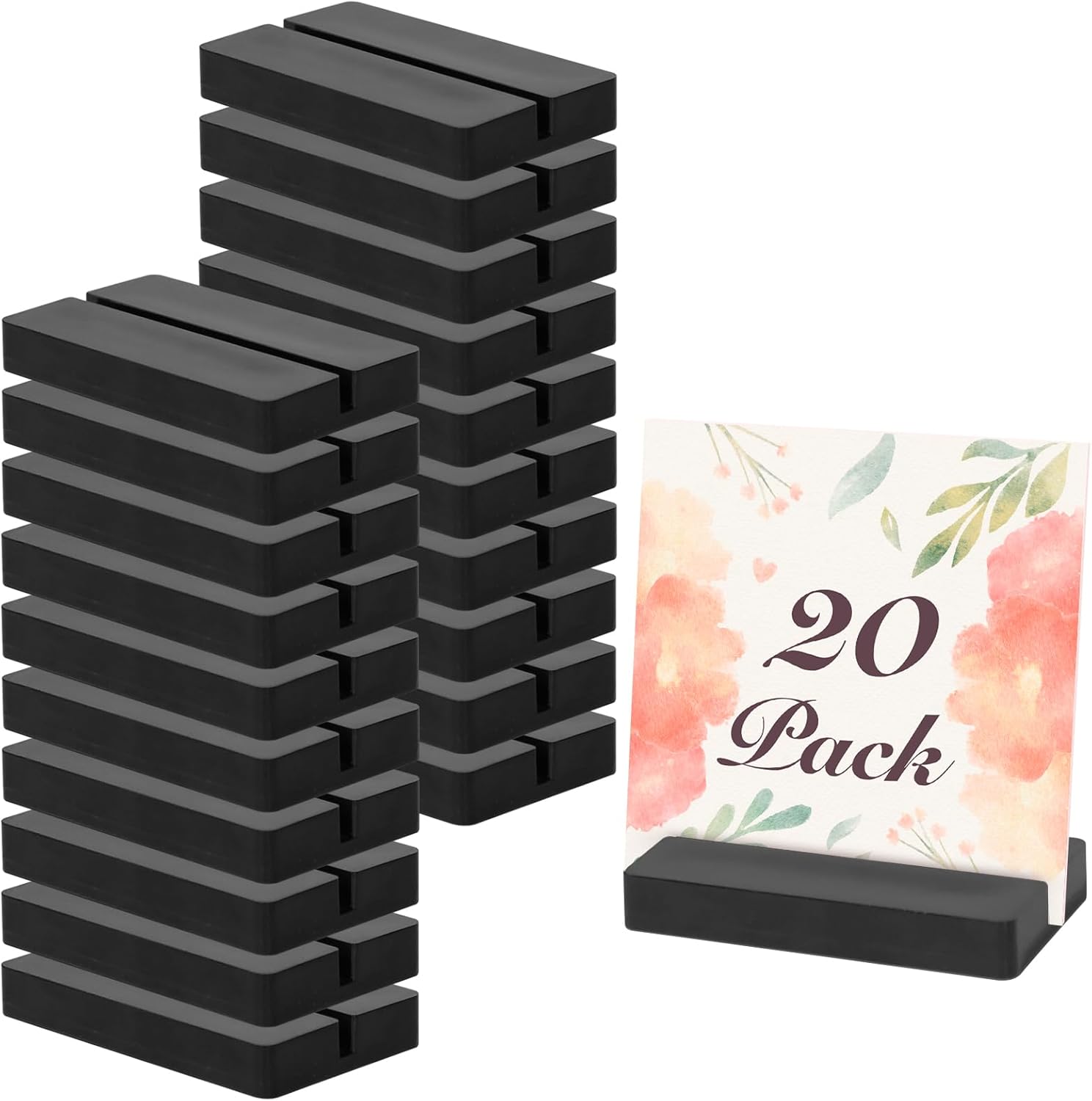 Acrylic Sign Stand | Wedding Sign Holdes, Acrylic Sign Stand with Card Slot, Used for Desktop/Menu Display, 20 Count (Black)