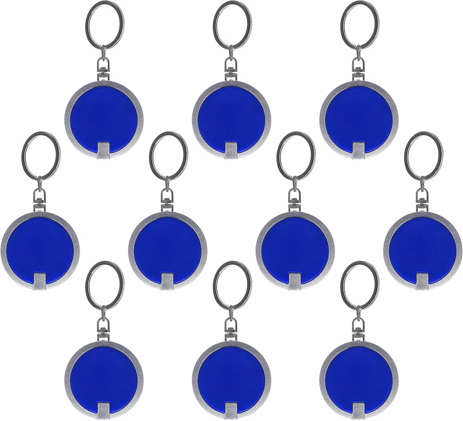 DISCOUNT PROMOS 10 Round LED Keychains - Battery included, Plastic - Blue