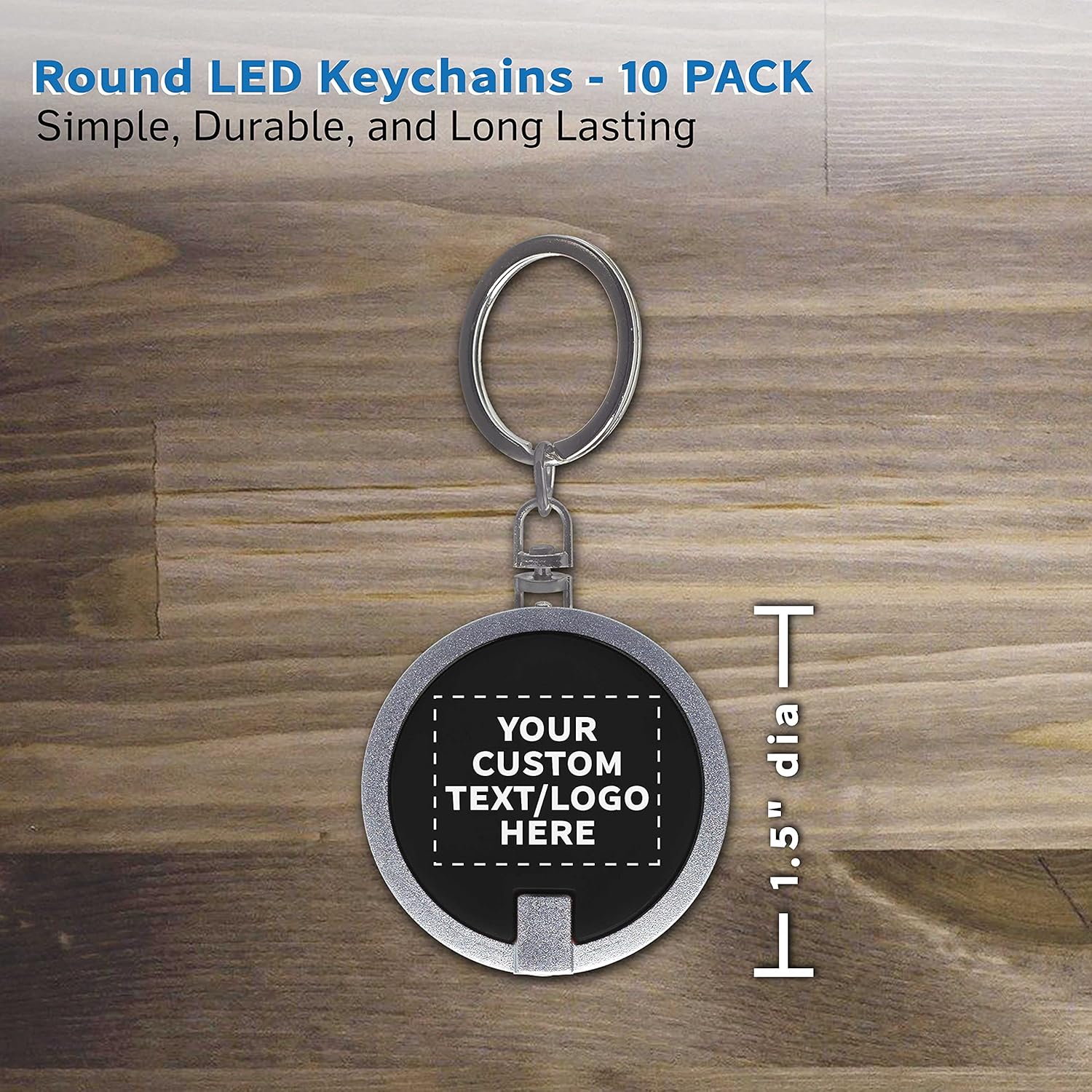 DISCOUNT PROMOS 10 Round LED Keychains - Customizable Text, Logo - Battery included, Plastic - Black