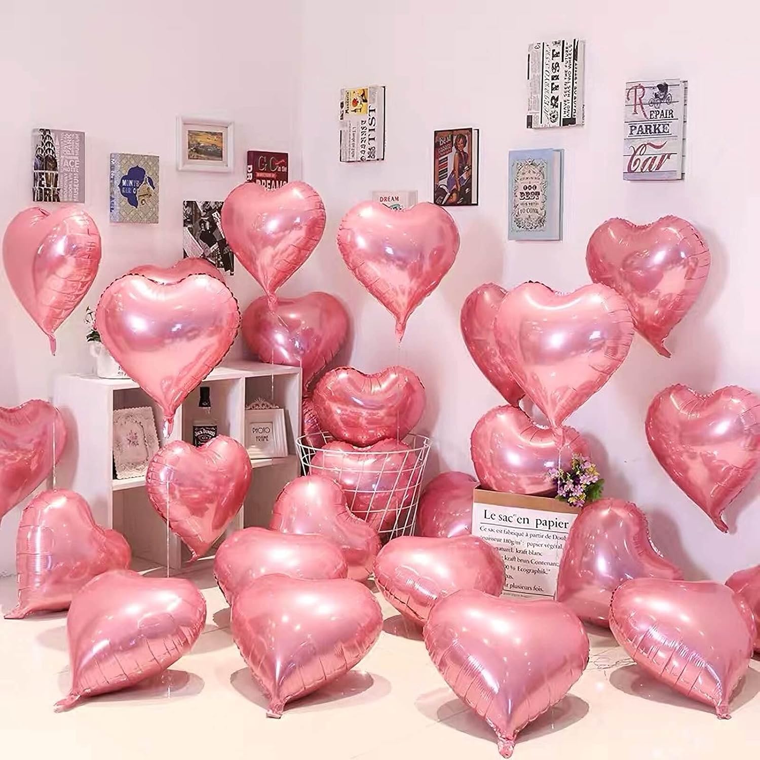 10Pcs Pearl Pink Foil Heart Shaped Balloons 18 Inch Mylar for Baby Shower, Wedding, Valentine Decorations - Love Party Supplies
