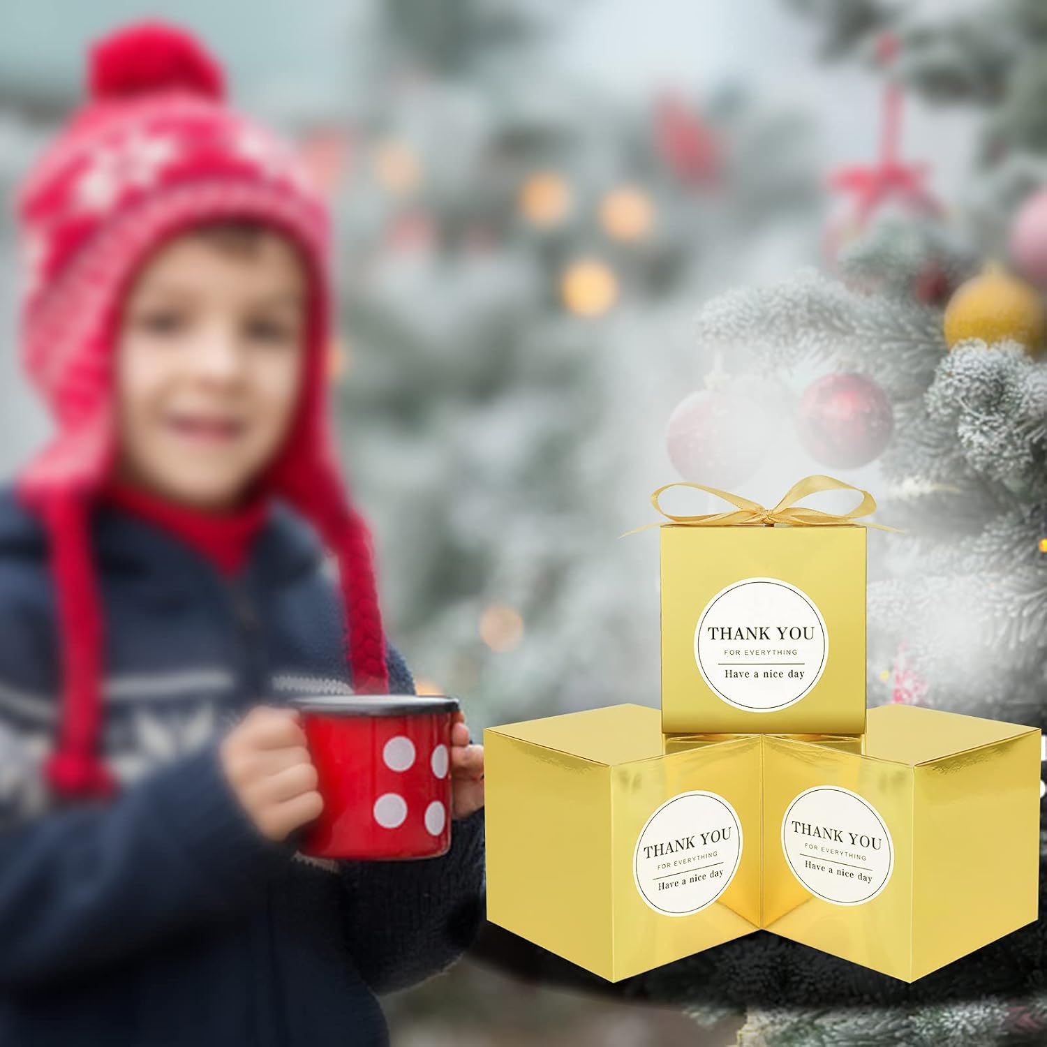 - What You'll Get: 60pcs Gold favor boxes,60pcs gold ribbons and 60pcs Thank you stickers. you can tie a bow knot on top, which will be more elegant and romantic for party.