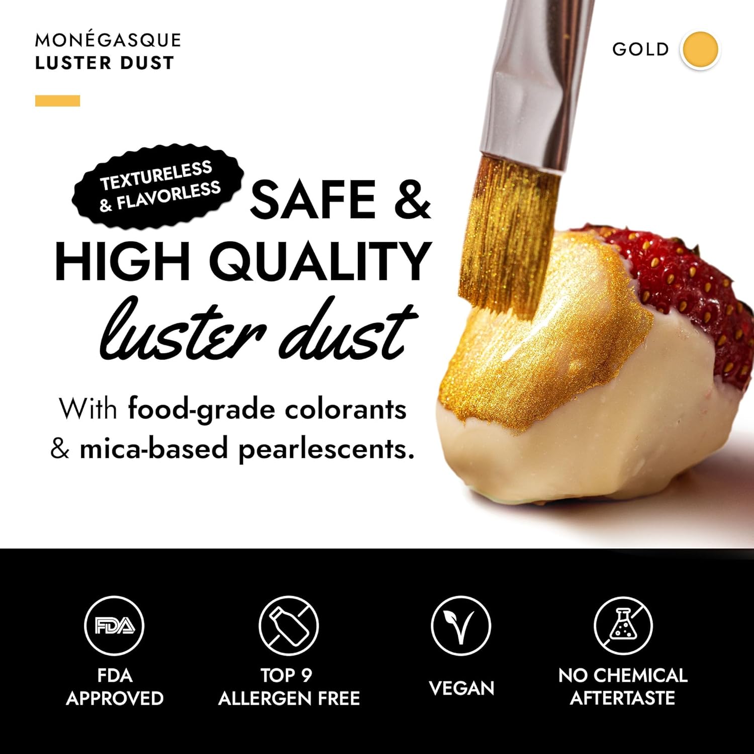 - EASY TO USE: Our gold luster dust is incredibly versatile. Apply with a wet brush, airbrush, or dry brush, and even mix into beverages. Achieve professional-looking results effortlessly at home, whether decorating halloween cakes or adding shimmer to cocktails.