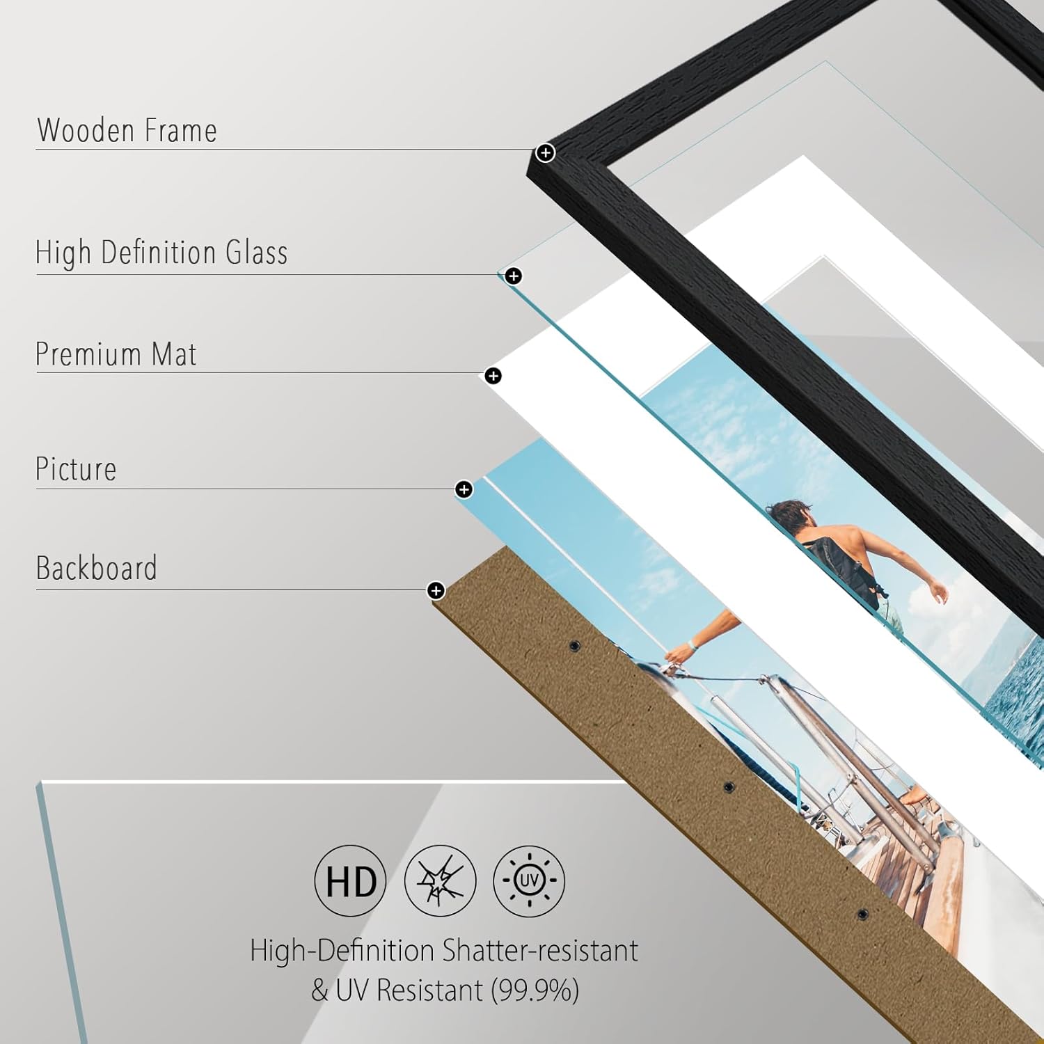 - CRYSTAL CLEAR GLASS: Serving your pictures a perfect view, VCK introduces polished HD tempered glass. This is harder to break than ordinary glass, anti-UV (99.9%), anti-scratch, and safe to use for kids.