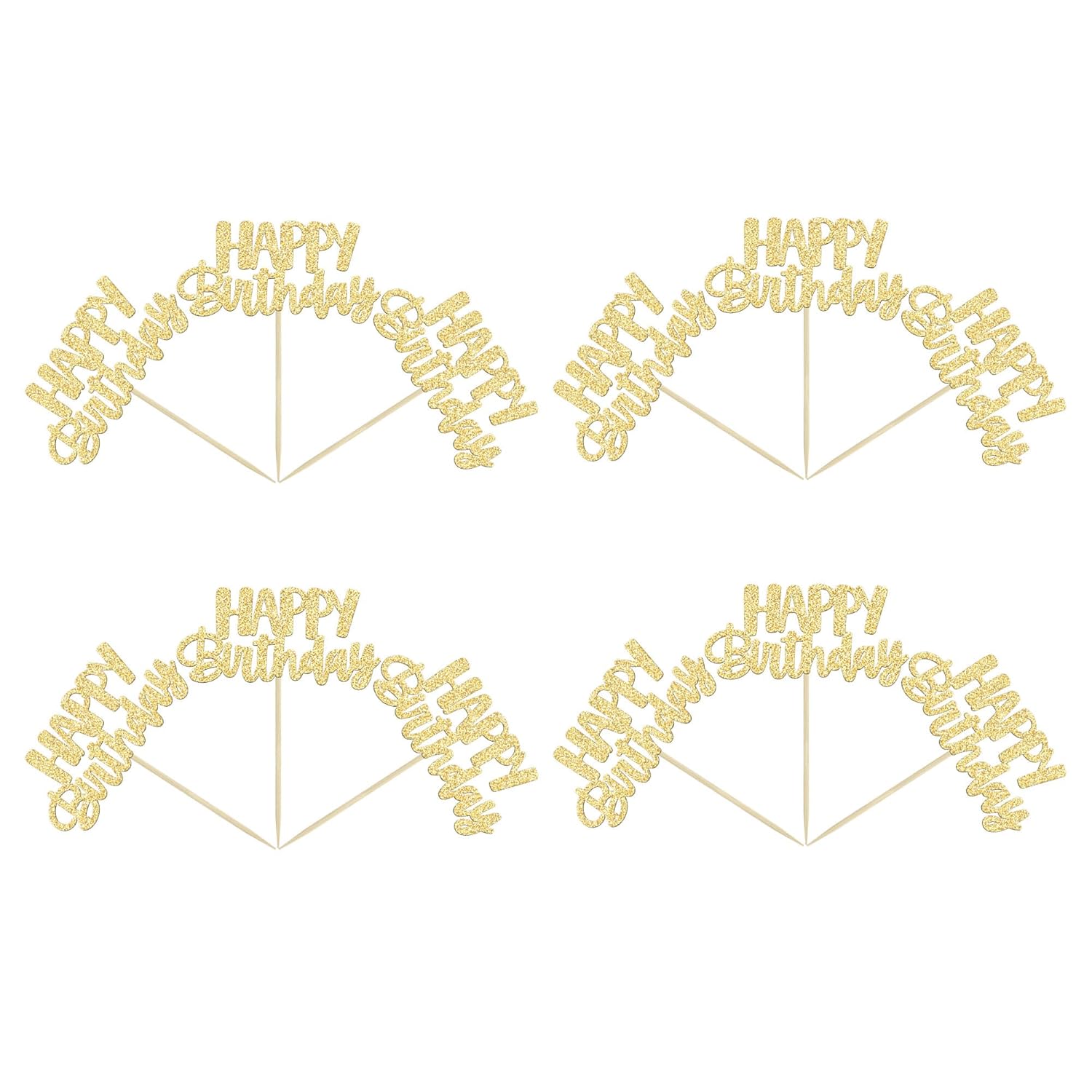 Gyufise 24Pcs Happy Birthday Cupcake Toppers Gold Glitter Celebrating Birthday Cake Picks Baby Shower Kids Birthday Party Decoration Supplies