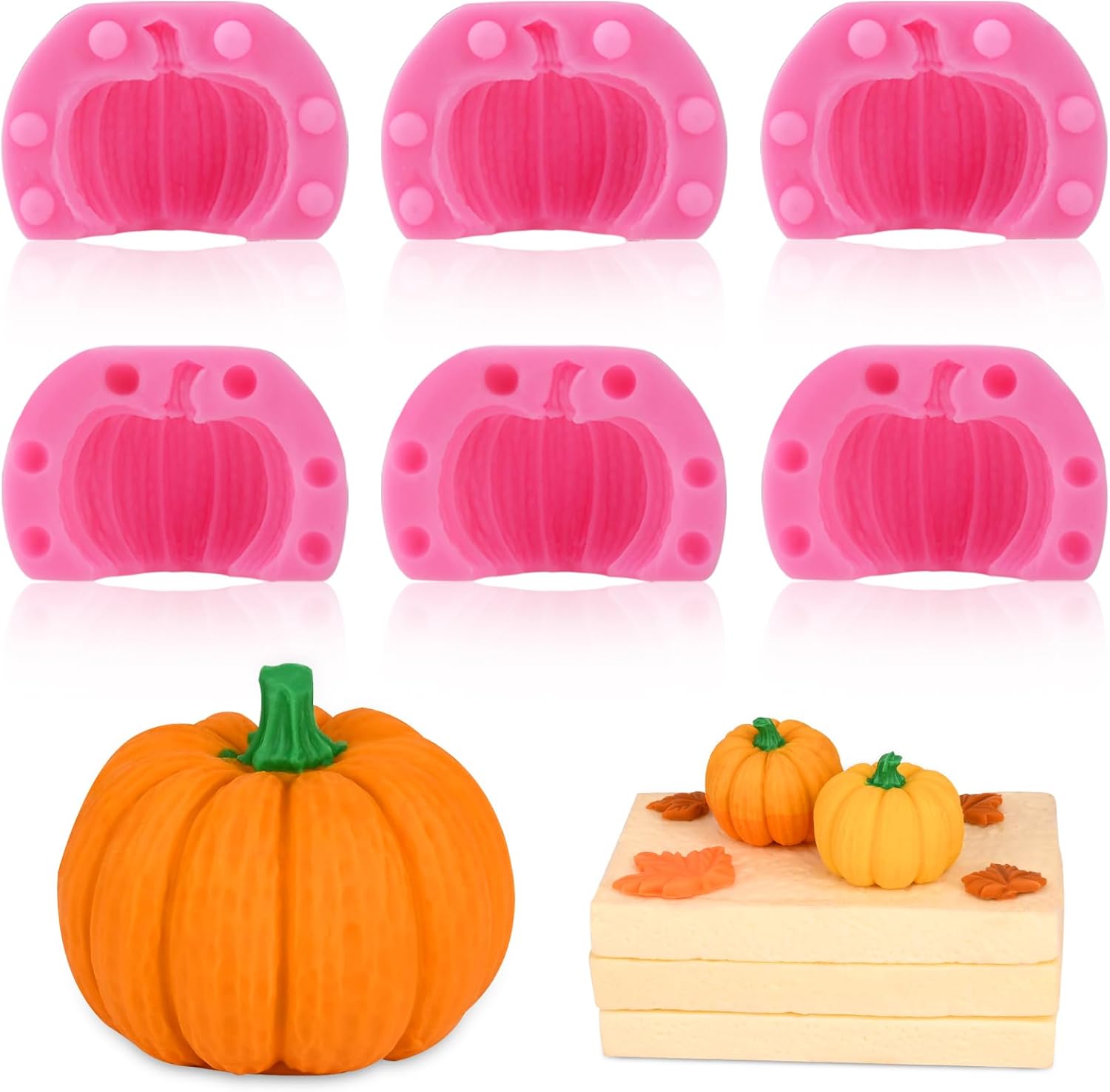 Actvty 3D Pumpkin Silicone Molds, 6 Pcs Half a Pumpkin Chocolate Candy Fondant Mold for Halloween Thanksgiving Fall Baking, Cake Decoration, Soap Candle Clay Resin Casting