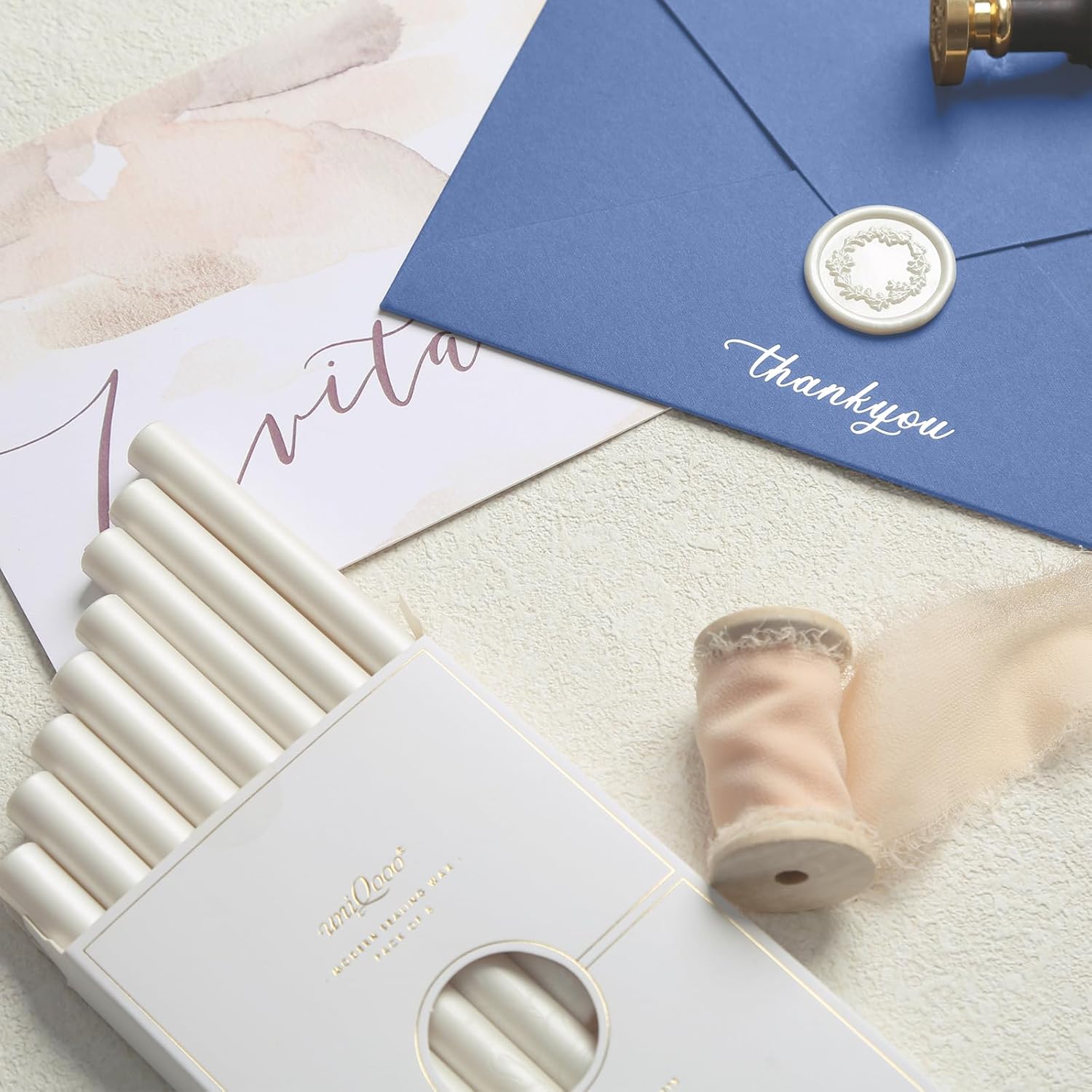 UNIQOOO Pearl White Glue Gun Sealing Wax Sticks for Wax Seal Stamp - Perfect for Wedding Invitations, Snail Mails, Wine Gift Wrapping, Christmas Gift, Pack of 8