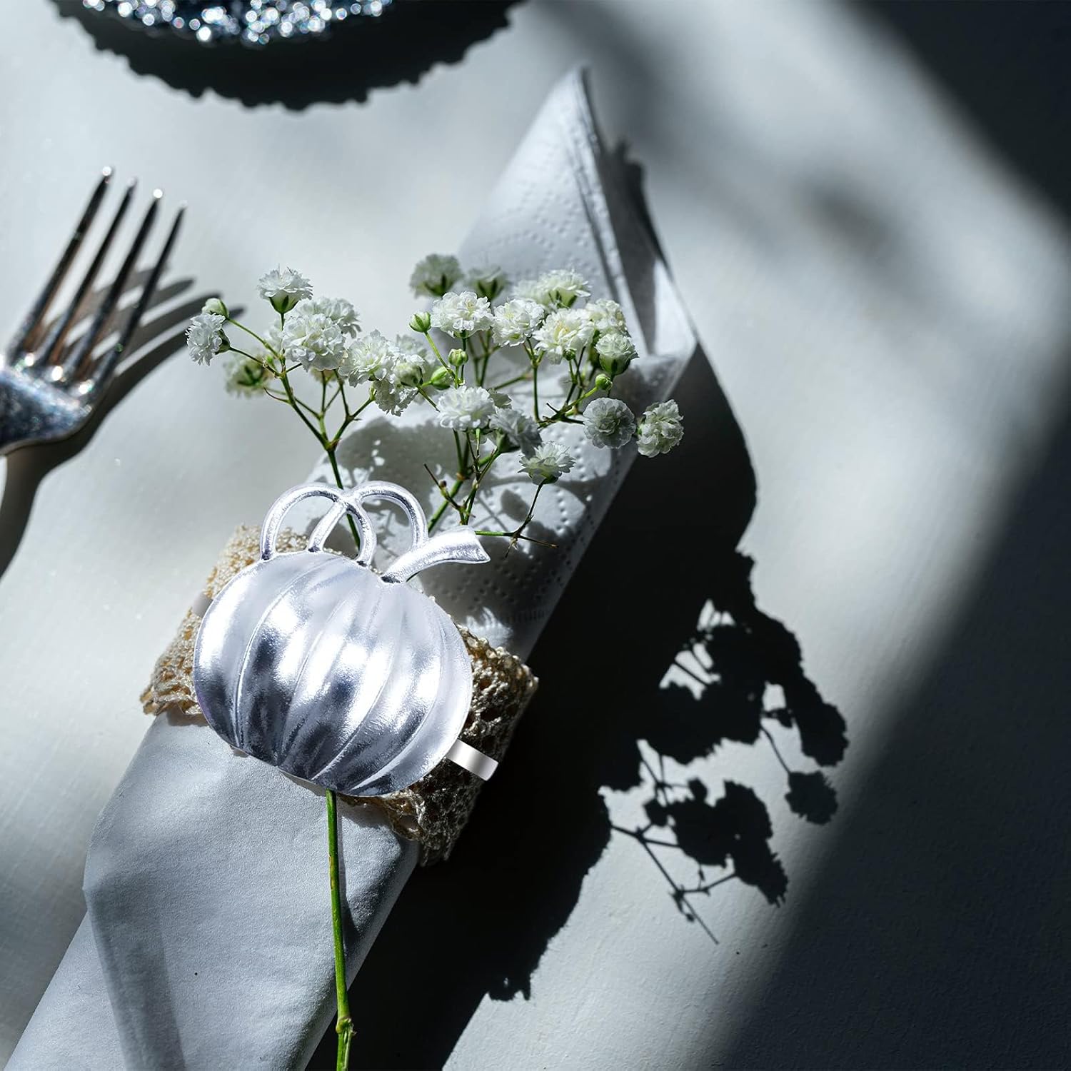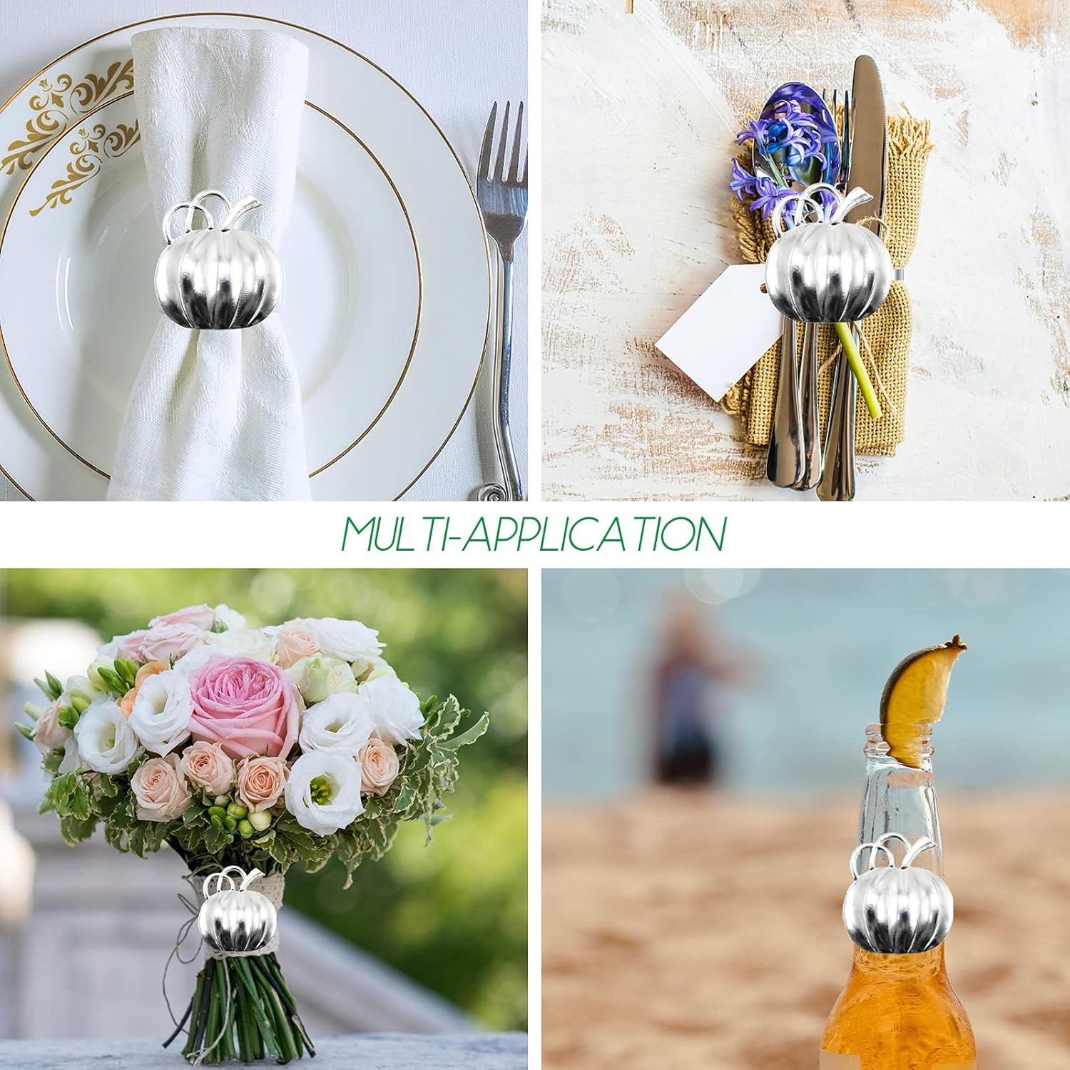 - 🎃🍁【VINTAGE PUMPKIN】Realistic harvest silver pumpkin design, looks simple and beautiful, connected with ring tightly and not fall off, really added a delicate to your table, bring lots of fun to your dinner time, and impress every guest deeply at your dinner party.