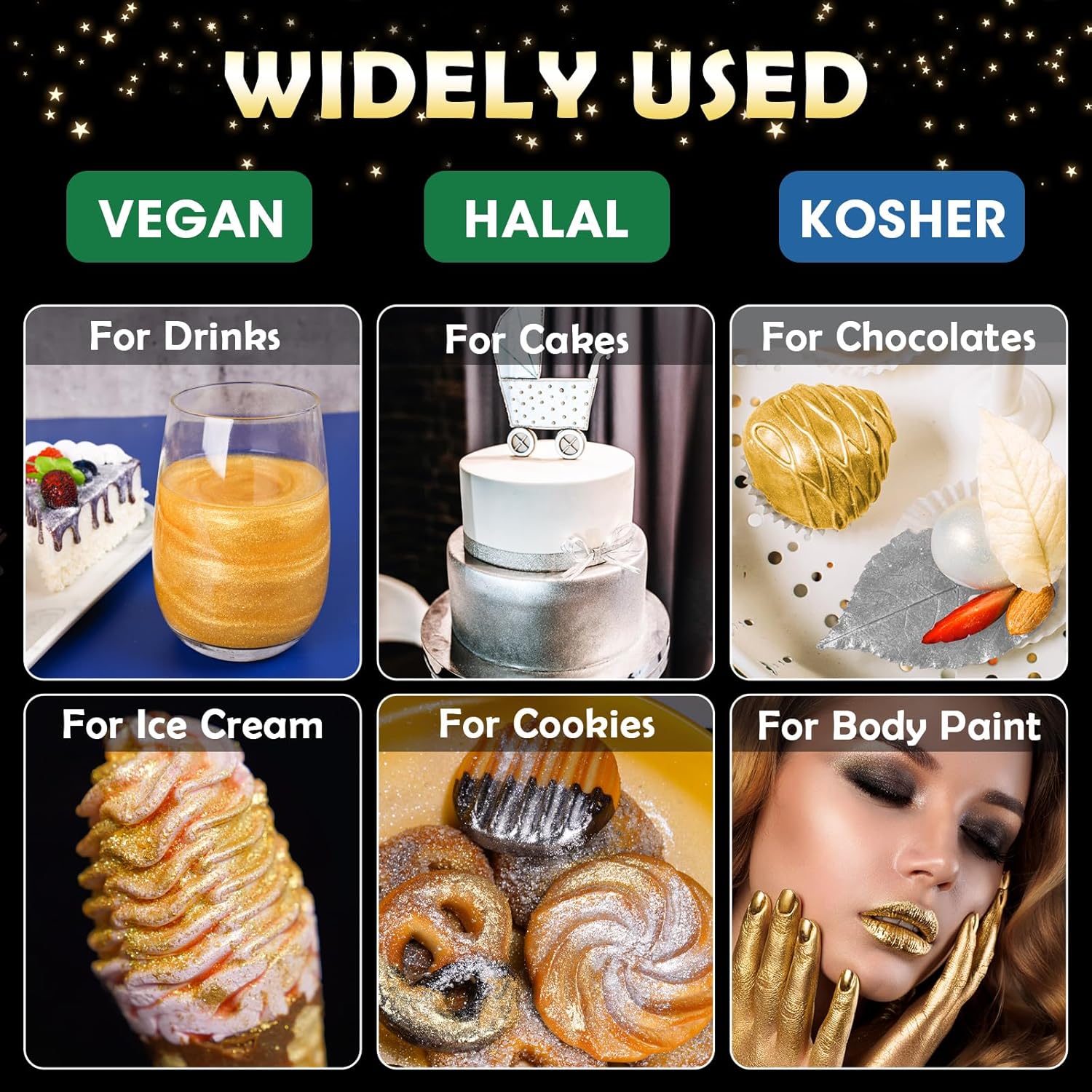 - ✔️【Vegan & Allergen-Free】Food-grade glitter uses only the highest quality vegan ingredients and does not contain common food allergens, including gluten, nuts or dairy products, so everyone can use and enjoy this product regardless of diet or food allergies. Unlike food contact glitter, these are 100% edible, so you don't need to worry about using them in your creations to make them sparkle for all.